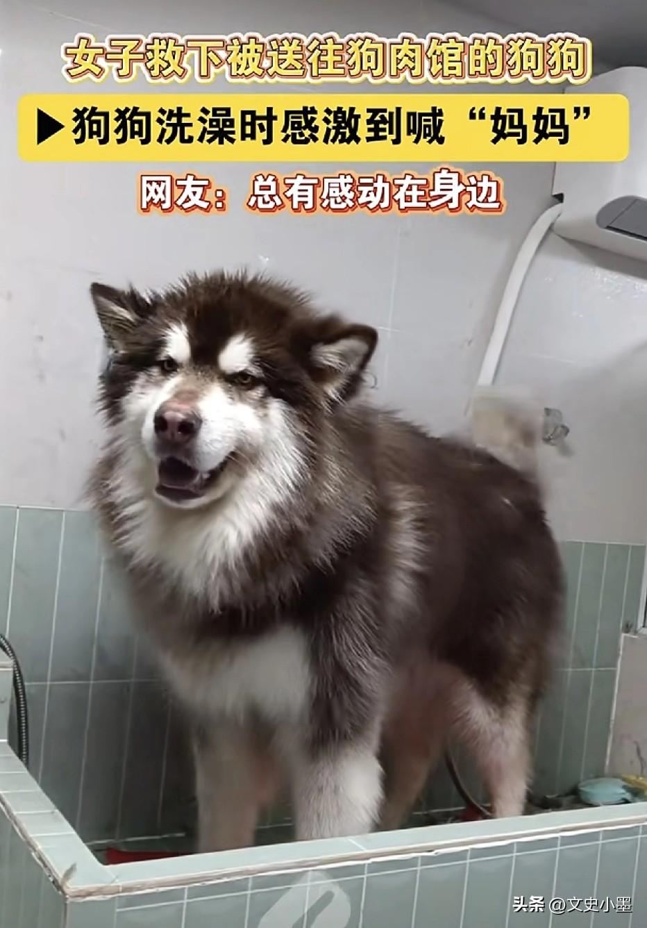 近日,重庆一女子开车行走在路上时,发现前面一辆三轮车上站着一只狗狗,她觉得这只狗狗非常乖,于是上前跟骑三轮车的大爷搭话,结果得知大爷要把这只狗卖到狗肉馆! 可能觉得跟这只狗狗比较可爱,她不忍心看它被搬上餐桌,于是跟大爷协商花600元买下了它!在给狗狗洗澡的时候,狗狗发出了mama的声音,仿佛在感激她的救命之恩,让她非常震惊和感动,觉得应该善待它! 原来,这只阿拉斯加犬体重140斤,是大爷家人养的,现在他们都不在家了,把这只狗留给了大爷,大爷觉得自己不会养狗,于是就打算把它卖到狗肉馆! 该女子十分有爱心,也比较喜欢收养小动物,目前家里已经收养了十几只狗和几十只猫了,已经容纳不了它了,希望有好心人能够收养这只阿拉斯加! 这只阿拉斯加是非常幸运的,要不是碰上这位爱心女士,估计现在已经成了盘中餐了!好人一生平安!