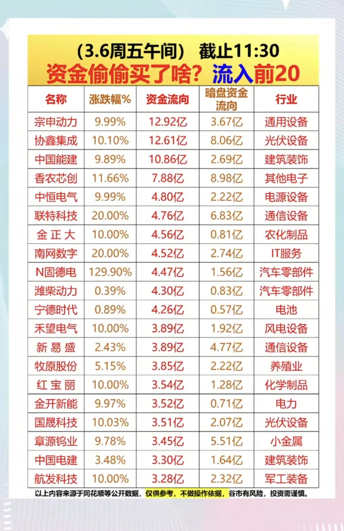 3.6周五 主力偷偷买了啥?暗盘数据TOP20! 1.电源设备 2.汽车零部件 3.风电设备 4.化学制品 5.光伏,金属钨