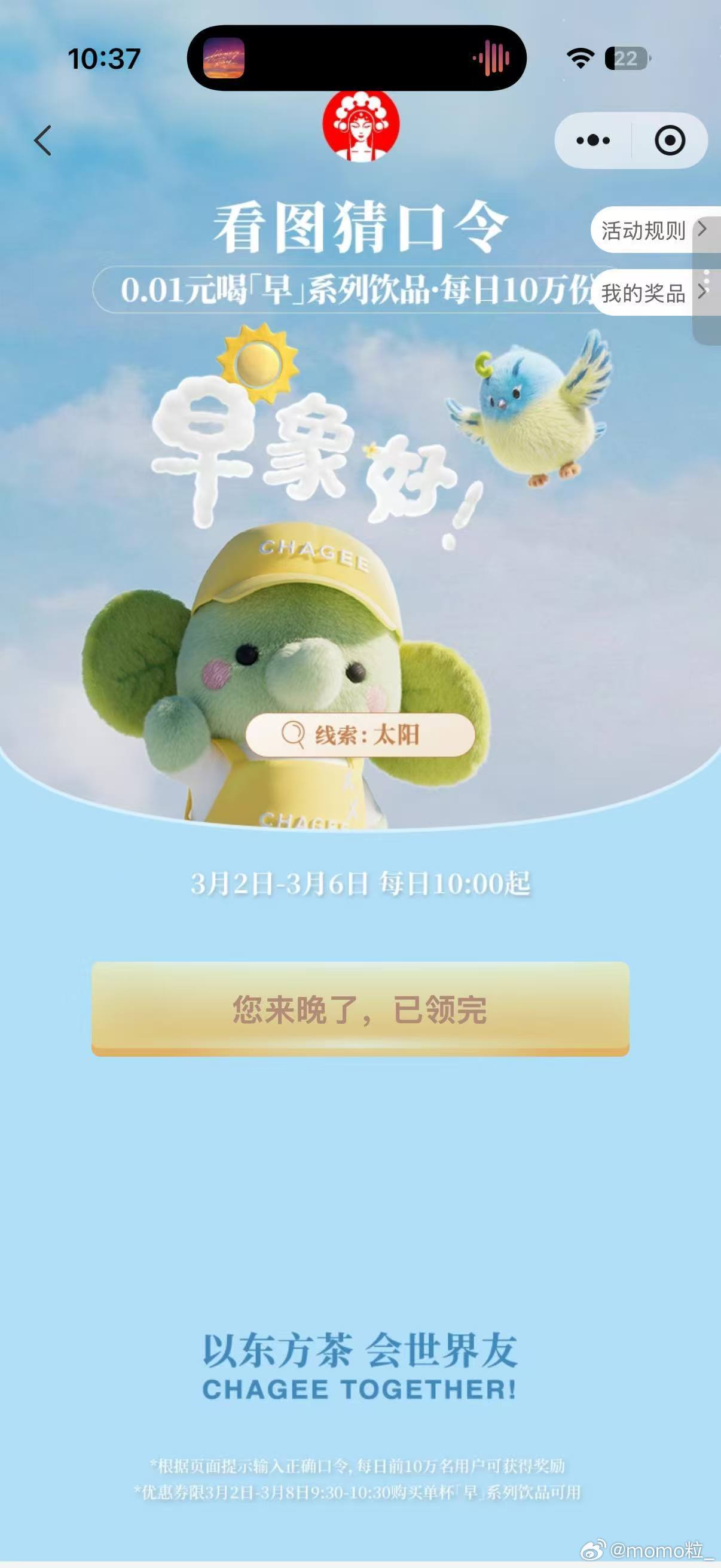 霸王茶姬免单 活动最后一天才知道消息,等我点进去的时候已经抢完了