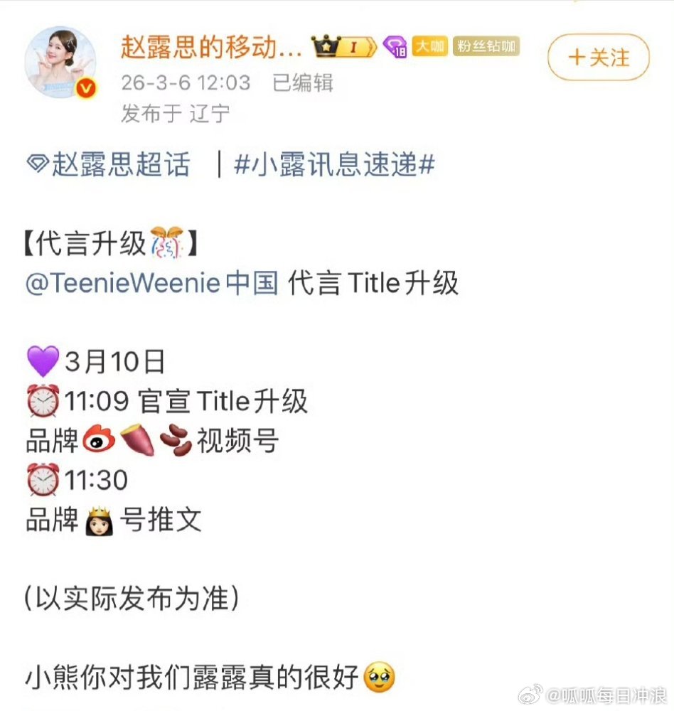 赵露思2026年开年不仅+新代言,小熊也要升title了,开年商务好消息不断。