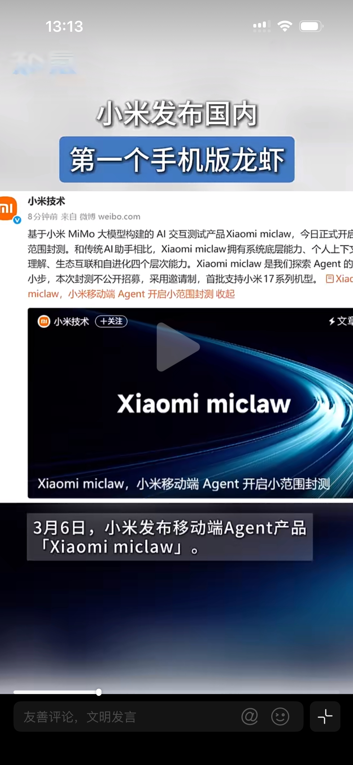 小米miclaw开启封测 手机 AI 终于从聊天变成干活了,不再是普通的语音助手小米龙虾MicLaw这波探索,还能联动人车家全生态,自主完成复杂任务,这次只开放给小米17全系⬇️,你们觉得以后手机 AI 会变成什么样?Xiaomi 17 Ultra 徕卡版Xiaomi 17 UltraXiaomi 17 Pro MaxXiaomi 17 ProXiaomi 17