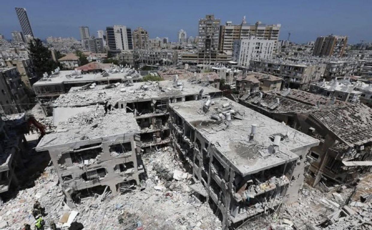 来自伊朗导弹的威力,以色列特拉维夫的拆迁现场。
