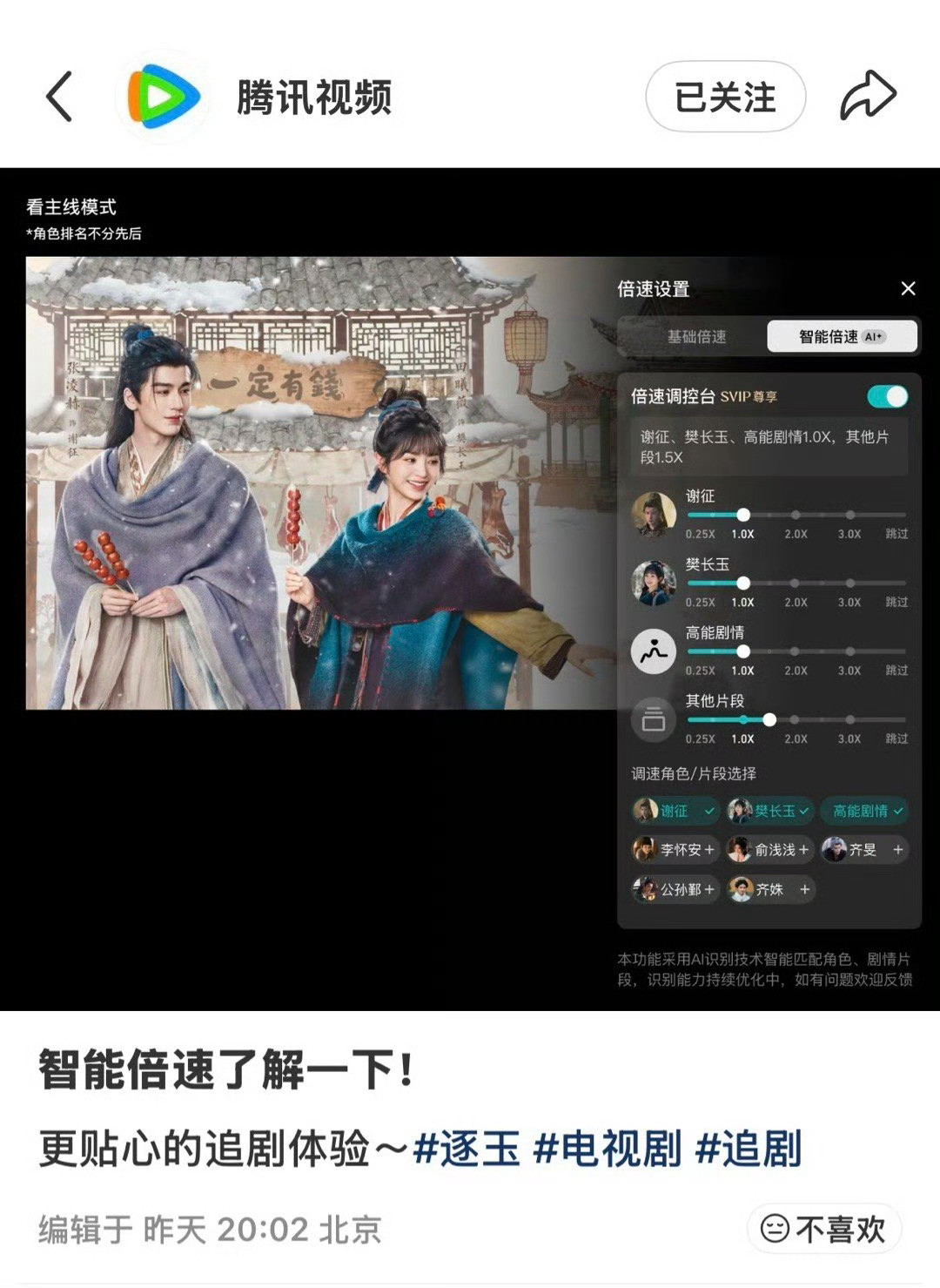 以后所有流量生花粉都不要🍊云包场了,游戏规则已被破坏,再怎么卷也干不动逐玉这类保皇。逐玉 智能倍速看剧逐玉