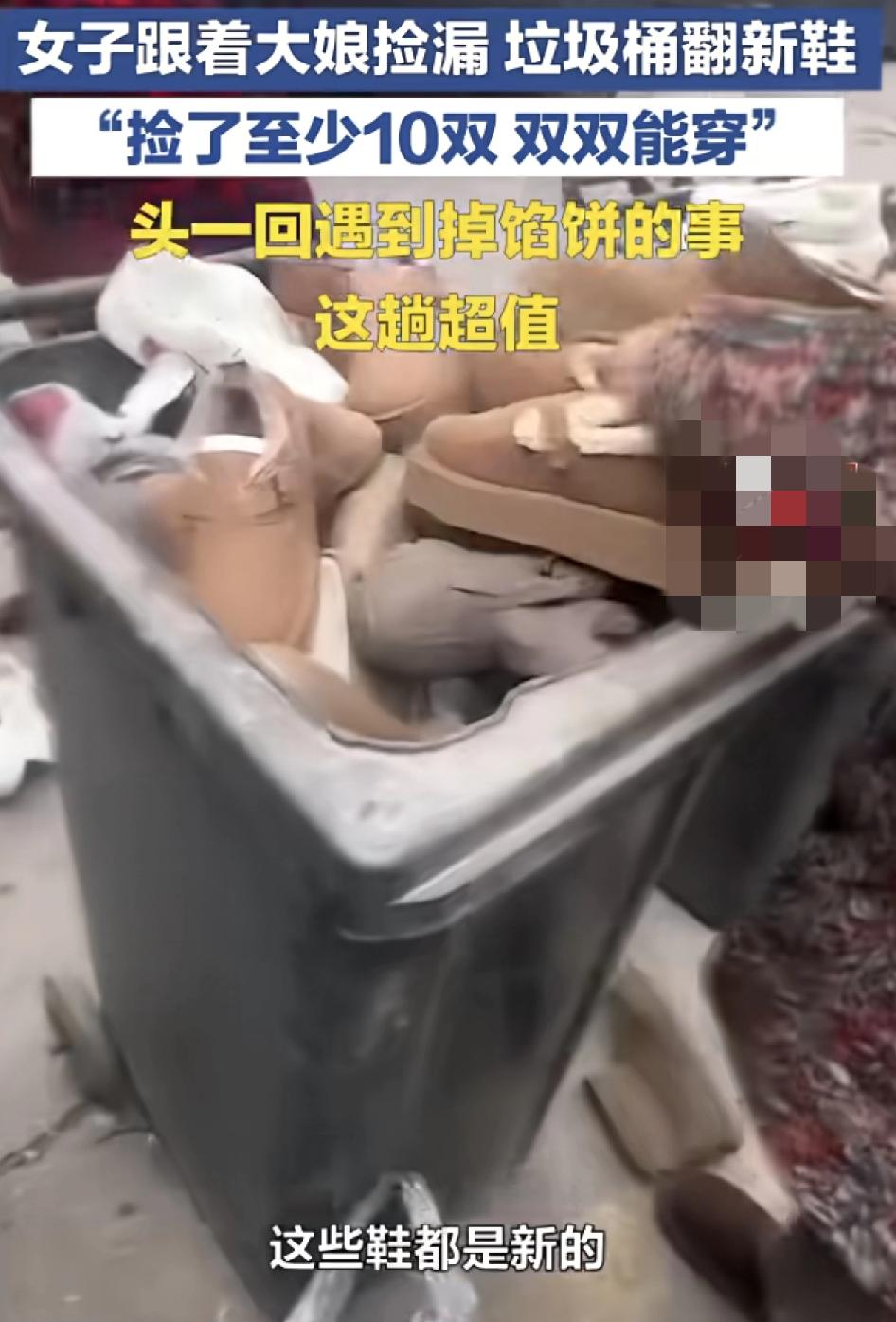 山东菏泽一女子有一次路过垃圾桶,看到大妈在捡鞋子,自己跟风捡了一波,捡回来十几双鞋发现码数跟自己都差不多,还有一些雪地靴穿上去还挺暖和的,没想到捡鞋也会捡到了惊喜,如果这些鞋子是尾货店里扔出来的那还不错,但是就怕是捡了一些旧鞋,带有细菌。