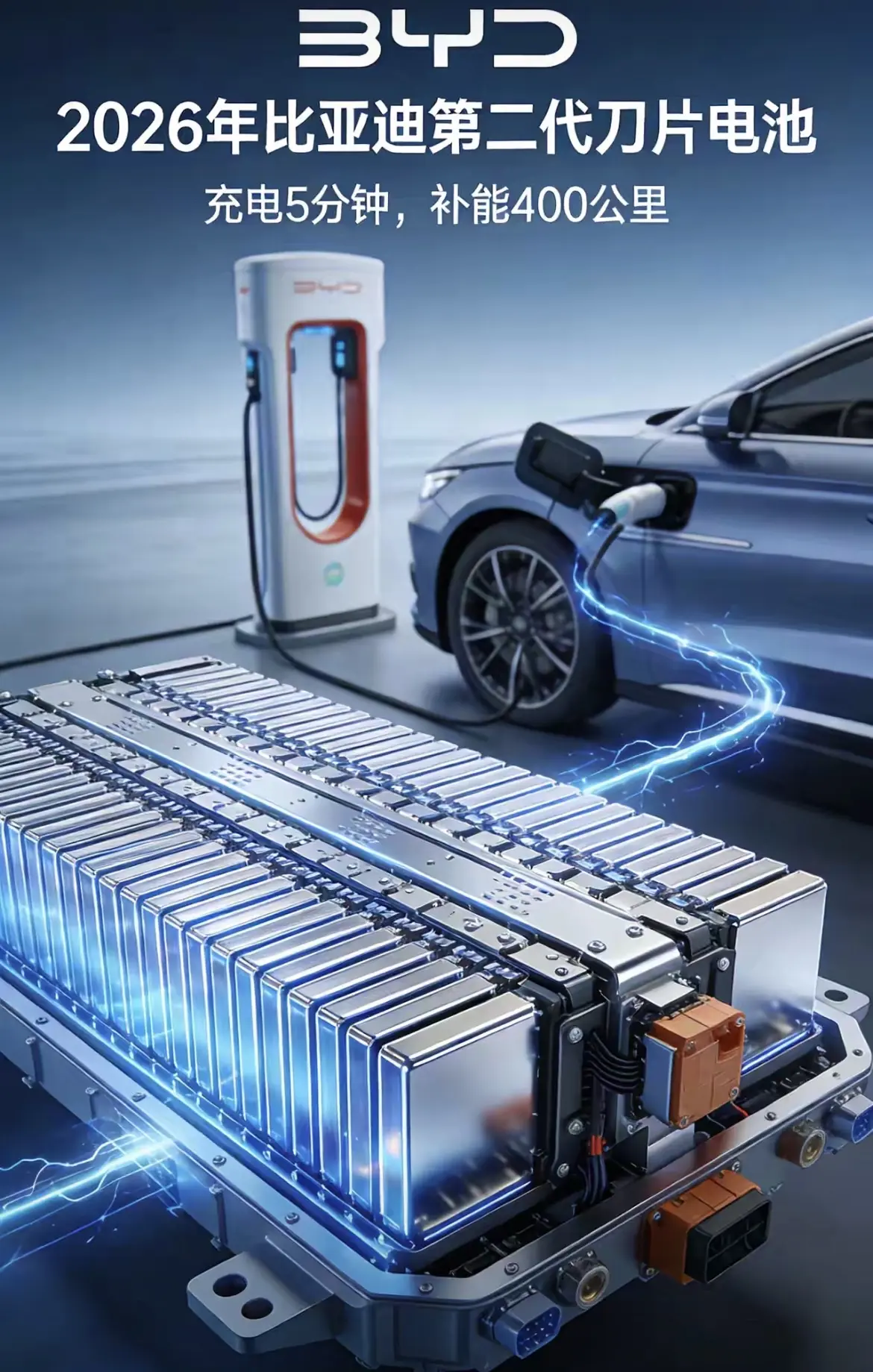 就在刚刚,比亚迪发布了第2代刀片电池,这款电池可以实现充电5分钟行驶400公里,从10%充到97%更是只需要10分钟。