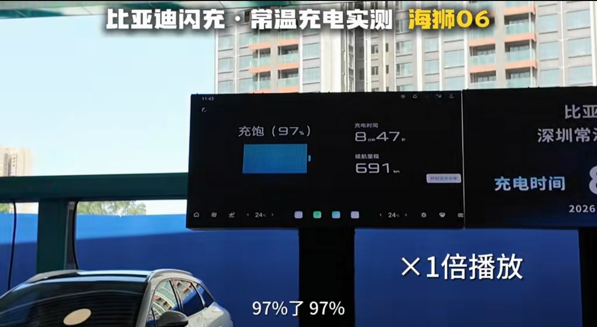 从比亚迪测试车辆的实际充电效果来看,售价十几万的海狮06从70公里续航充电到690公里只需要8分50秒左右的时间,这个充电时间跟燃油车的加油效率其实差不多了。