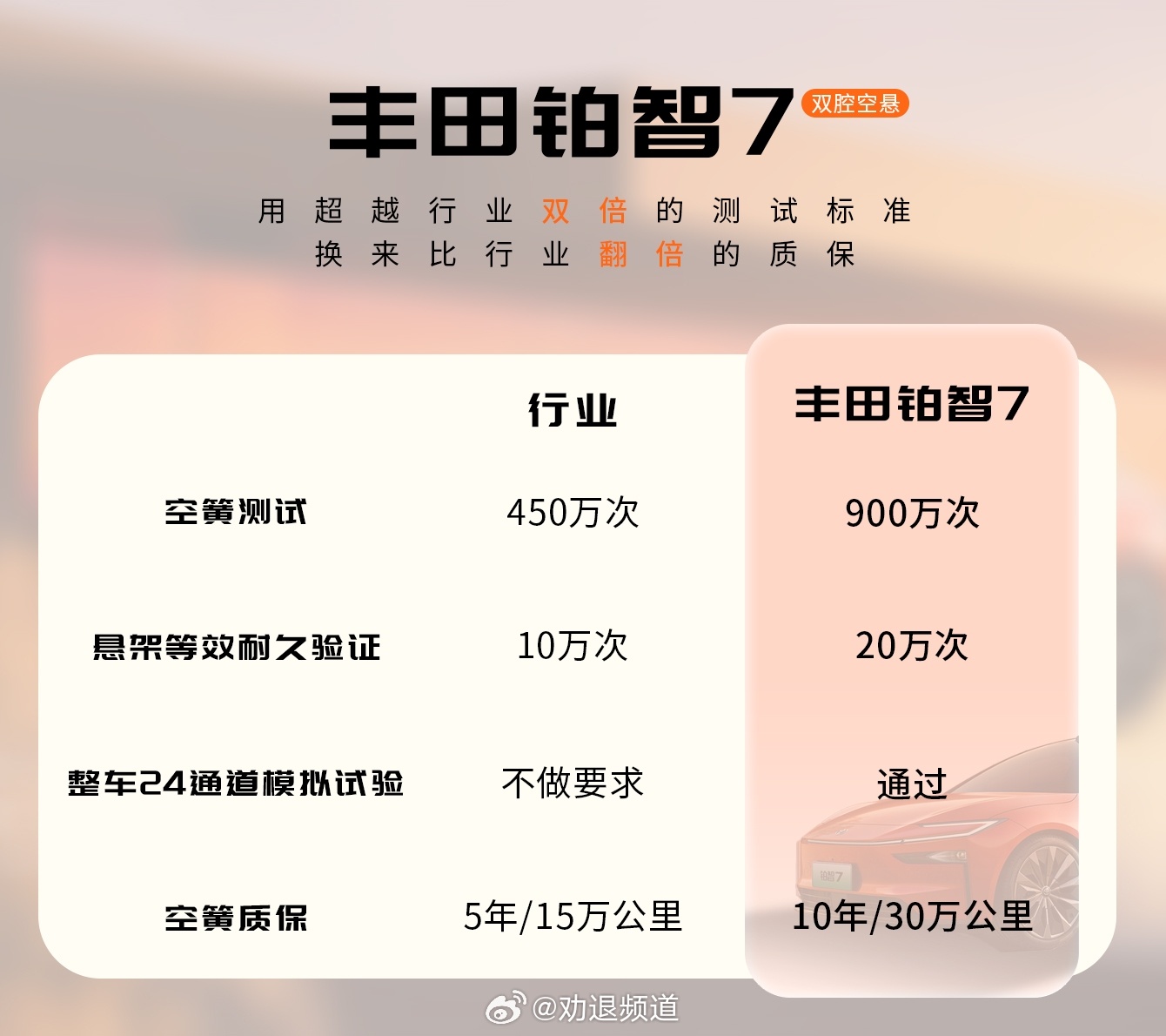 26年汽车双腔空悬能普及么昨天有个话题,讨论2026年能不能普及双腔空悬,恰好这两台车都有,比亚迪大唐就不多说了,它的底盘调教是上乘之作。最惊喜的还是铂智7,16万就能选配上双腔空悬。为了打消消费者维修空悬所带来高额费用的忧虑,丰田还限时赠送了空悬质保