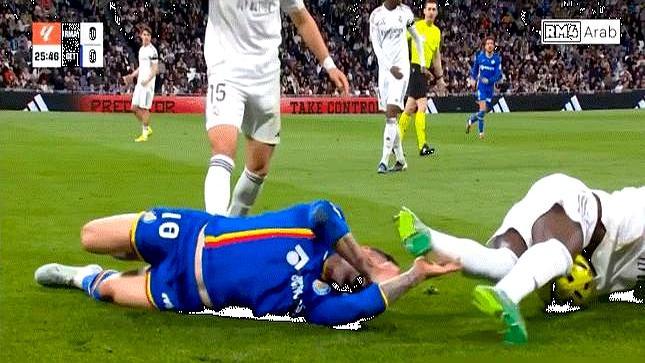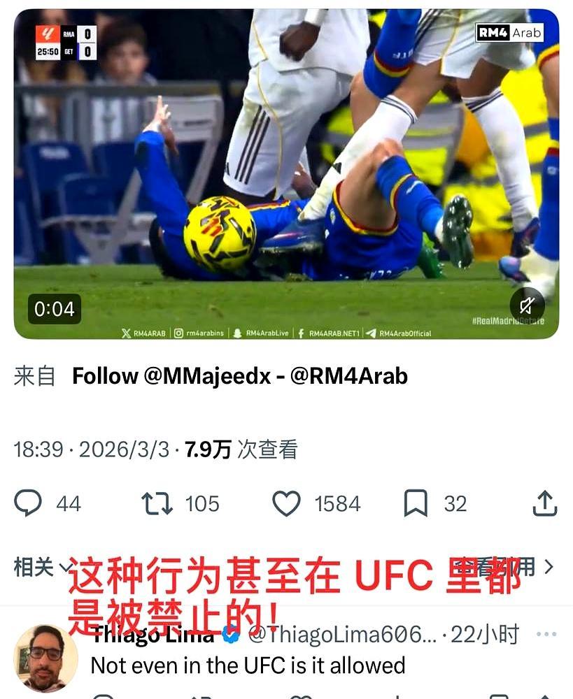 想象一下一个身高一米九的壮汉突然变向冲刺,把坚硬的膝盖狠狠砸向你毫无防备的面门。这不是UFC八角笼,这是皇马的主场。 比赛第二十五分钟,赫塔菲后卫里科摔倒在草皮上。吕迪格从几米外狂奔而来,左膝带着向下的重力加速度,结结实实顶进里科的脸颊。里科痛苦捂脸翻滚,慢镜头里下巴险些碎裂。 主裁判就站在几步之外,哨子没响,连手都没抬。VAR裁判盯着满屏幕的特写回放,同样选择闭口不言。里科赛后愤怒咆哮,换作他干出这种碎骨动作,足协少说要罚他停赛十场甚至整个赛季。 绿茵场上的特权从来不是强者的勋章,而是规则的悲哀。别让足球变成暴力的遮羞布,别让哨声沦为豪门的附庸,别让热血成为作恶的借口。
