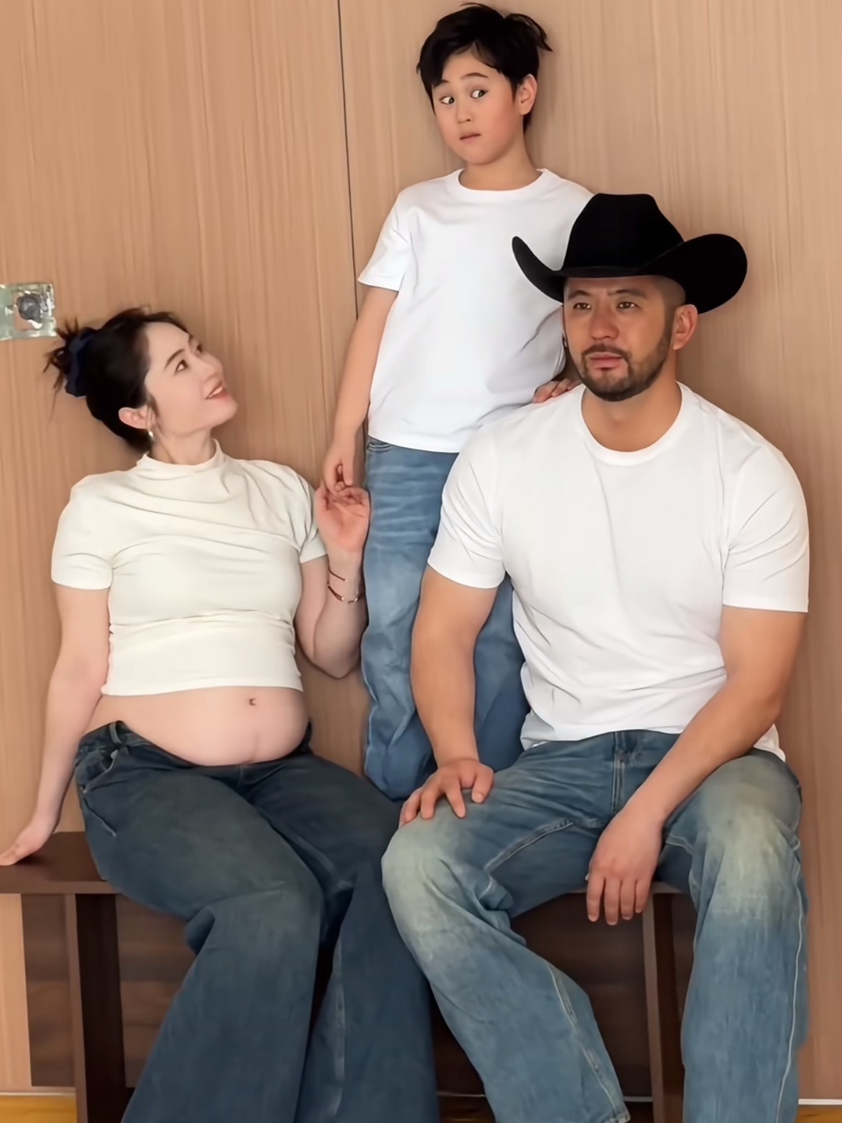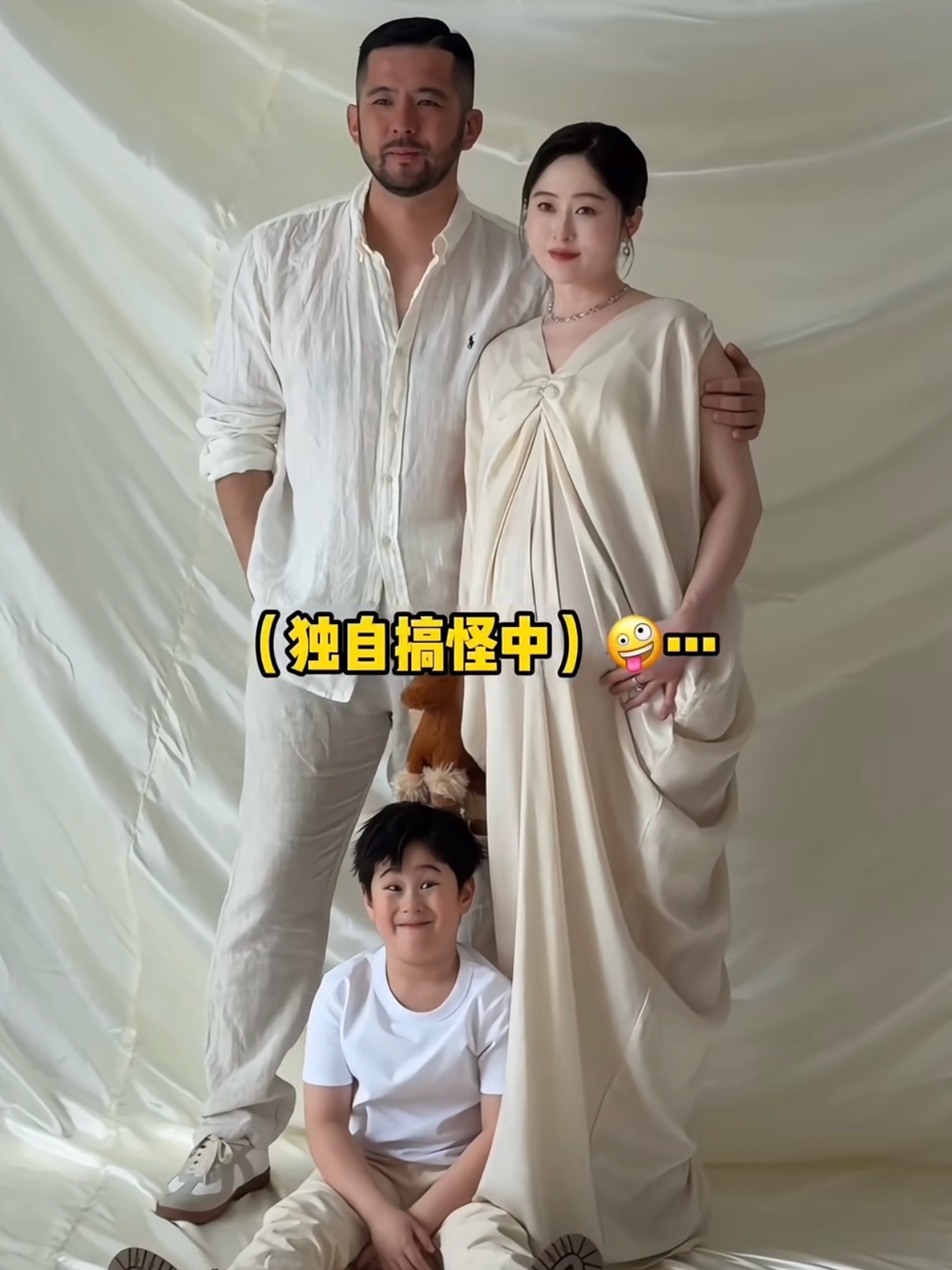 马君妍孕妇照马里奥一家好可爱的孕照呀!三套造型一套比一套美马君妍一家四口孕妇照