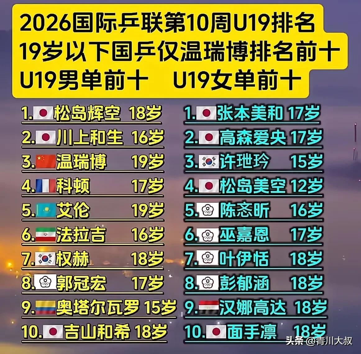 一直以为女乒强,其实只有孙颖莎和王曼昱强! 陈幸同和大迪都有很多人能打败她们, 中生代的蒯曼和陈熠, 也还没登顶! 蒯曼在多哈冠军赛被佐藤瞳零封, 新加坡大满贯又被早田希娜击败。 陈熠虽然打败了桥本帆乃香, 但是还需要打败申裕斌才能证明! 虽然蒯曼和陈熠还没有拿的出手的冠军, 但是相比于下一代, 她们已经是非常不错了!