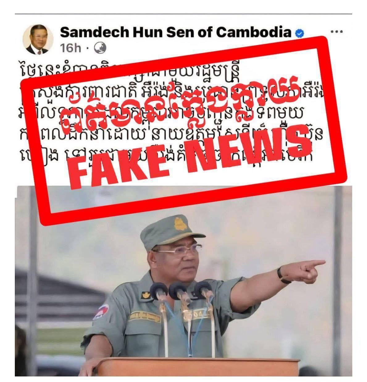 近日,一则离谱谣言在网络疯传:柬埔寨拟派兵支援伊朗对抗美国,甚至捏造由王家军副总司令兴文贤率军出征的细节,还冒用洪森亲王脸书账号散布虚假内容。 3月5日,洪森亲王发言人谢提乐火速发表声明,直接定性这是极端分子蓄意编造的假新闻。 声明强调,所谓“洪森与伊朗官员商议派兵”的说法纯属子虚乌有,造谣者目的就是抹黑洪森声誉,制造社会恐慌与动荡。 发言人紧急呼吁:别轻信、别传播未经证实的信息,一切以官方渠道消息为准!