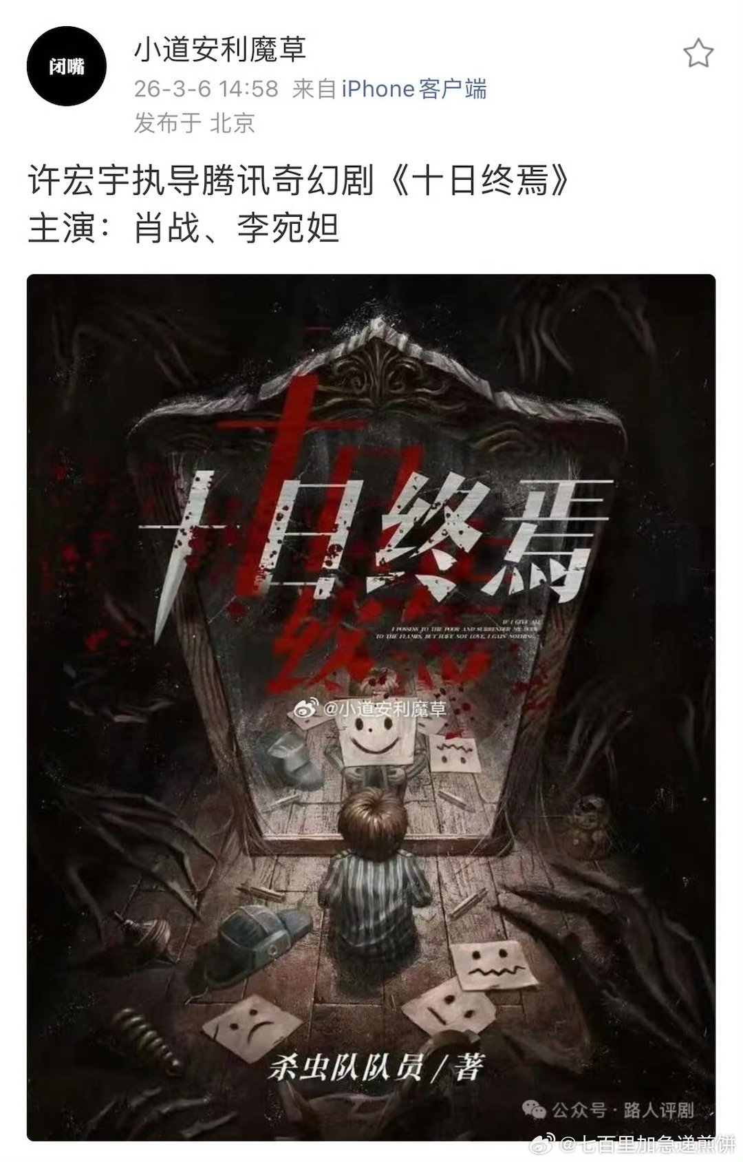 瓜主说 十日终焉主演是肖战 ➕ 李宛妲