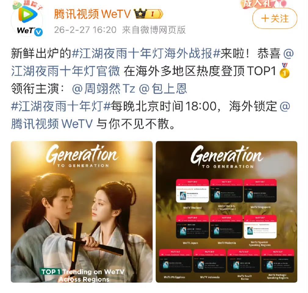 曝周翊然竞争十日终焉被pass其实周翊然《江湖夜雨十年灯》的戏份口碑都挺好的。这段出浴戏在外网被夸爆了,点赞惊人。新剧在WeTV海外十国热度登顶TOP1🥇不知道谁在黑啊