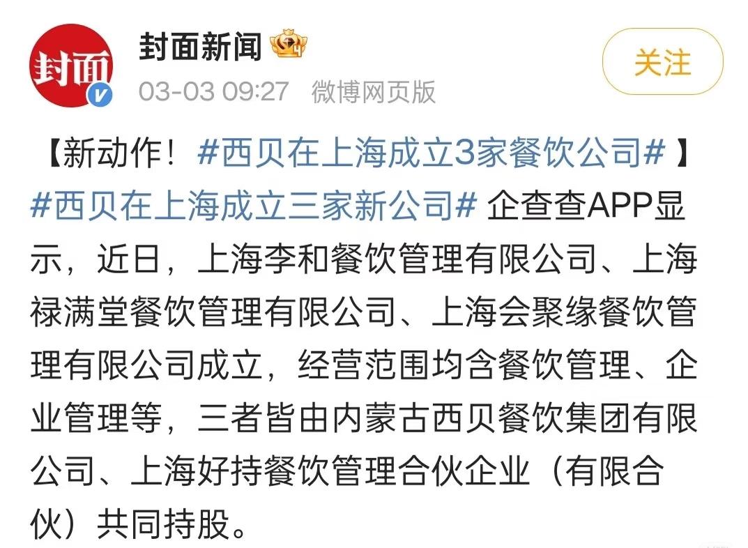 网上流出的西贝北京分公司给到员工的一张“待岗通知书”,上面明确写有待岗时间为26年3月3日-26年8月31日,待岗期间发放2540元/月的当地最低工资,并缴纳五险一金。 而就在几乎同时,网上又曝出西贝在上海又成立了3家餐饮公司。 那边厢北京分公司叫员工待岗半年,这边厢上海又成立了3家分公司,这又是什么操作?难道说上海生意好,北京生意不好?