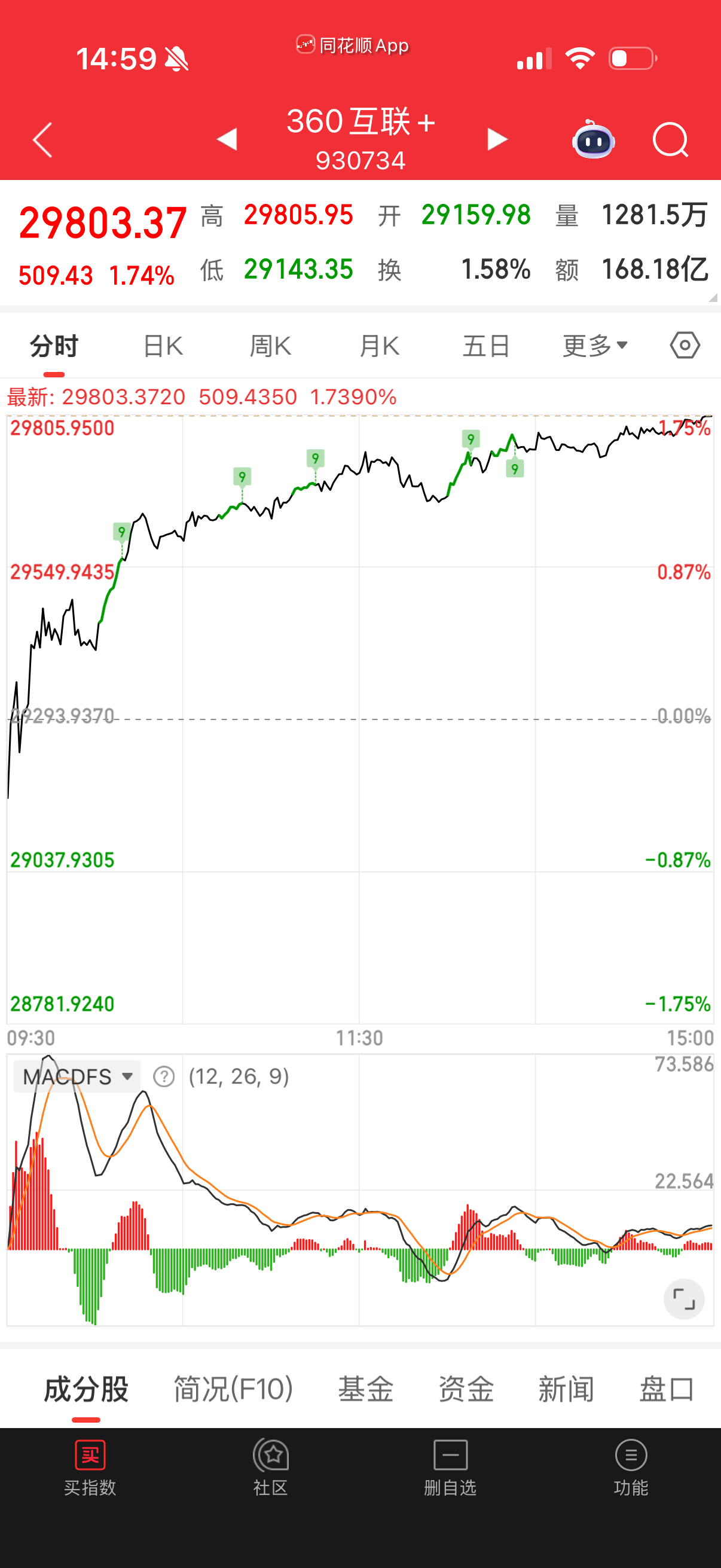 见鬼了,指数跳水360还一路拉高上去了。难得跌一次,继续定投吧,我怀疑它会不会过