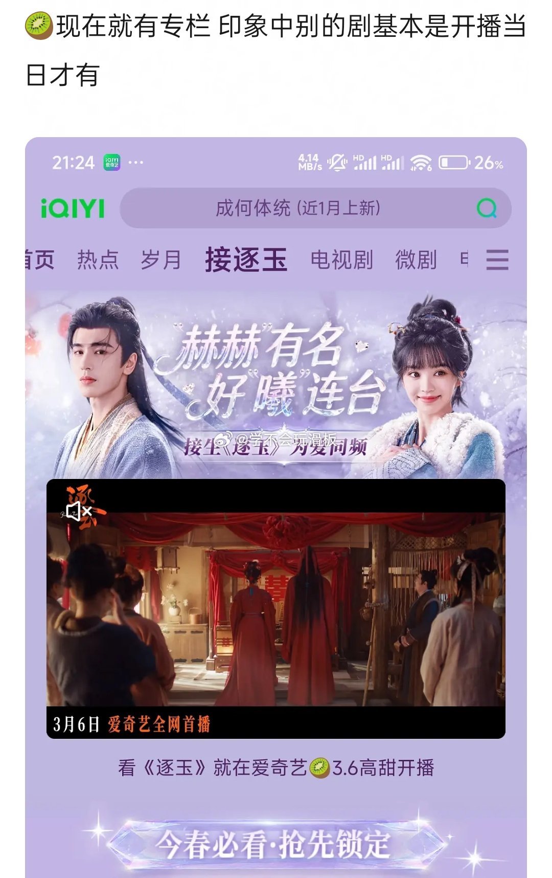 张凌赫、田曦薇、《逐玉》开播前站内待遇被网友说超级好,没有一部剧能比得上它的待遇,现在都在羡慕中 逐玉 智能倍速看剧