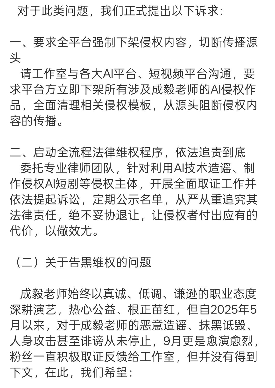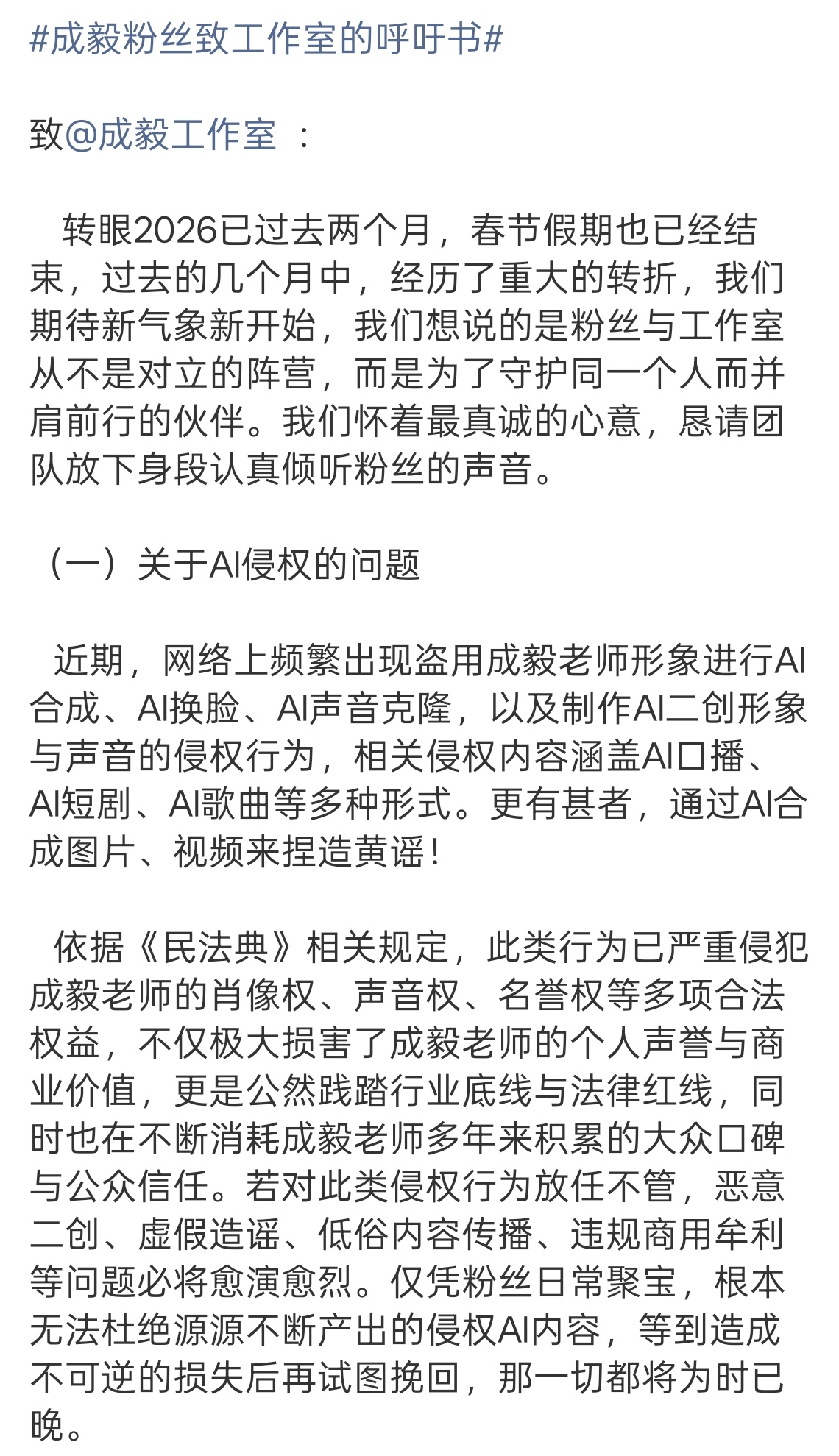 成毅粉丝致工作室的呼吁书!成毅粉丝致工作室的呼吁书