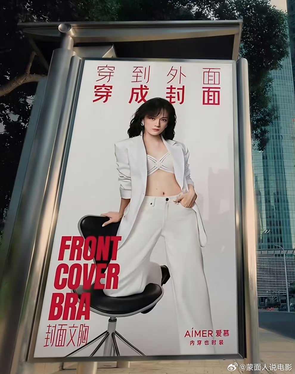 下班路过市中心地铁站,被巨幅广告牌瞬间吸引。画面中,文淇身穿爱慕封面文胸,外搭一件廓形白西装,慵懒倚在黑色椅上。身后玻璃幕墙映出落日余晖,“穿到外面 穿成封面”的红色标语在暮色中格外醒目。