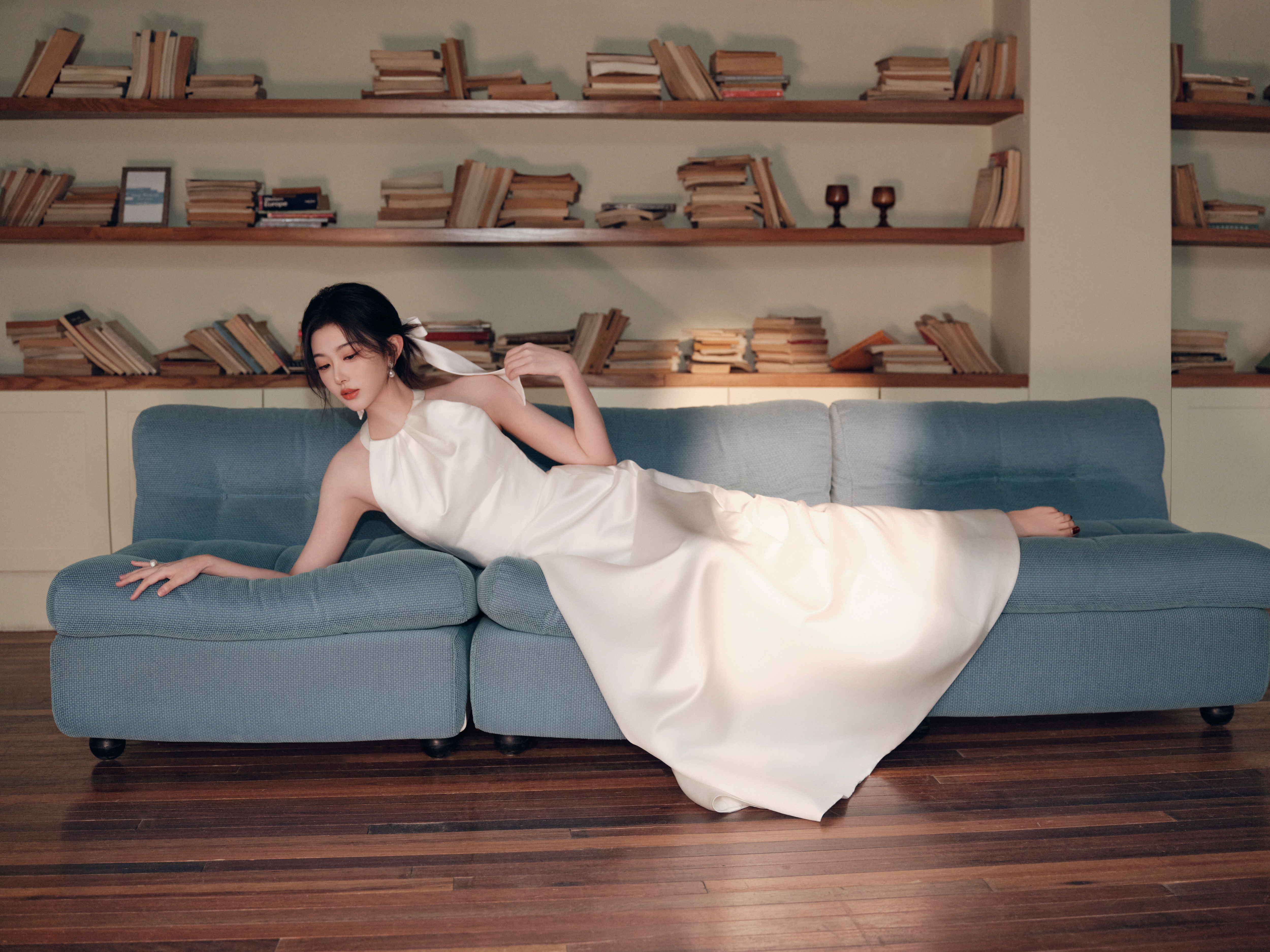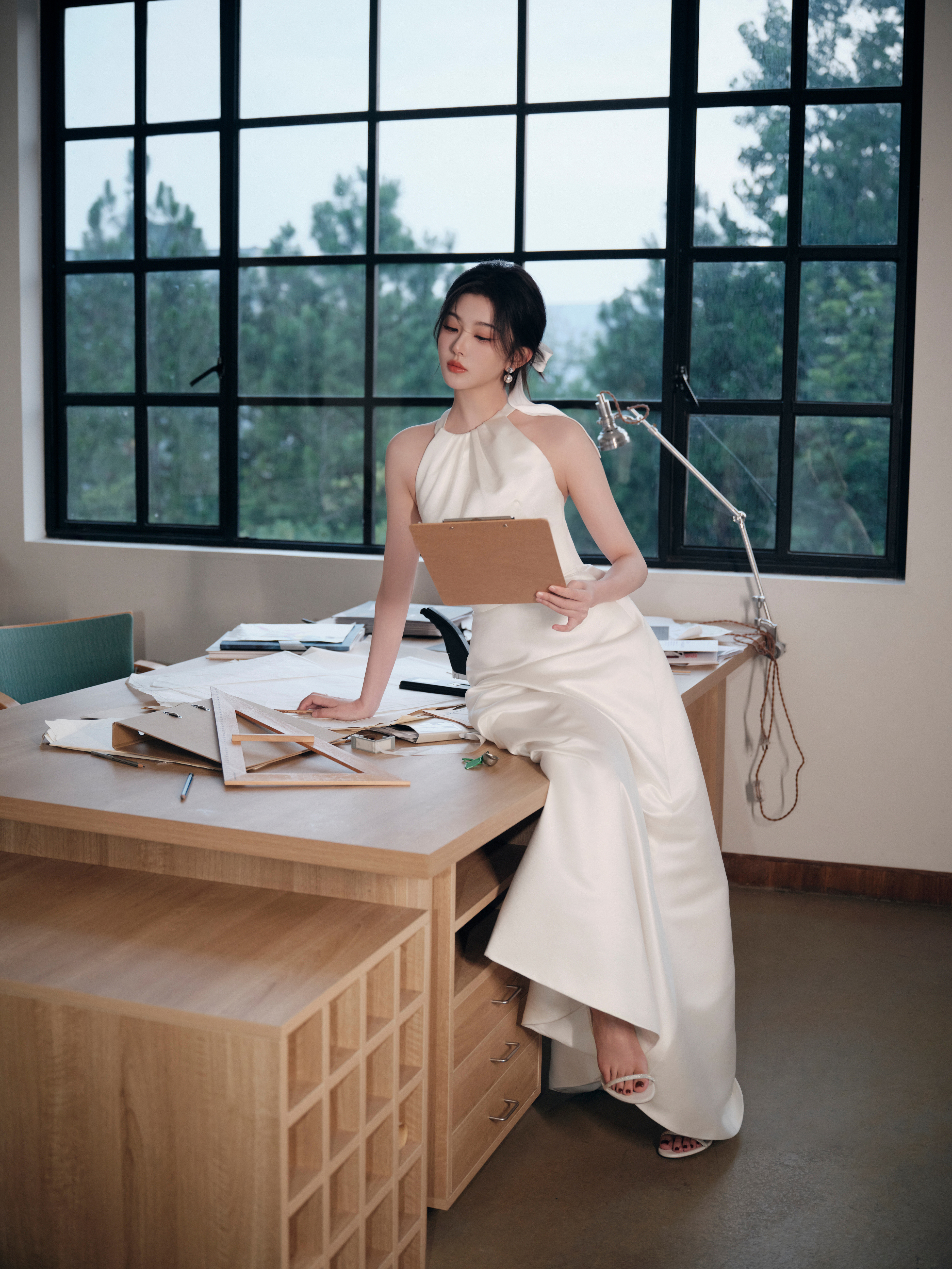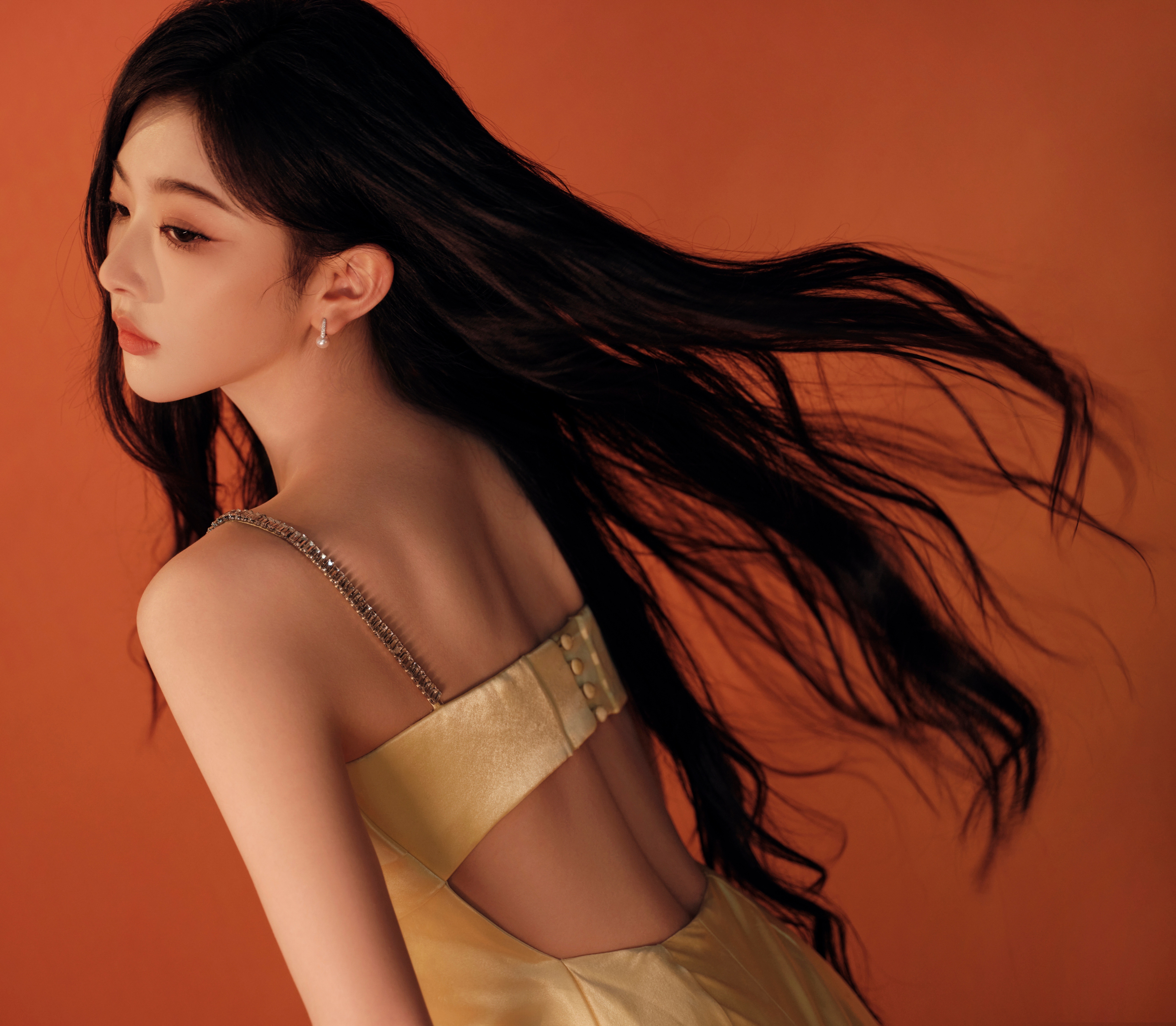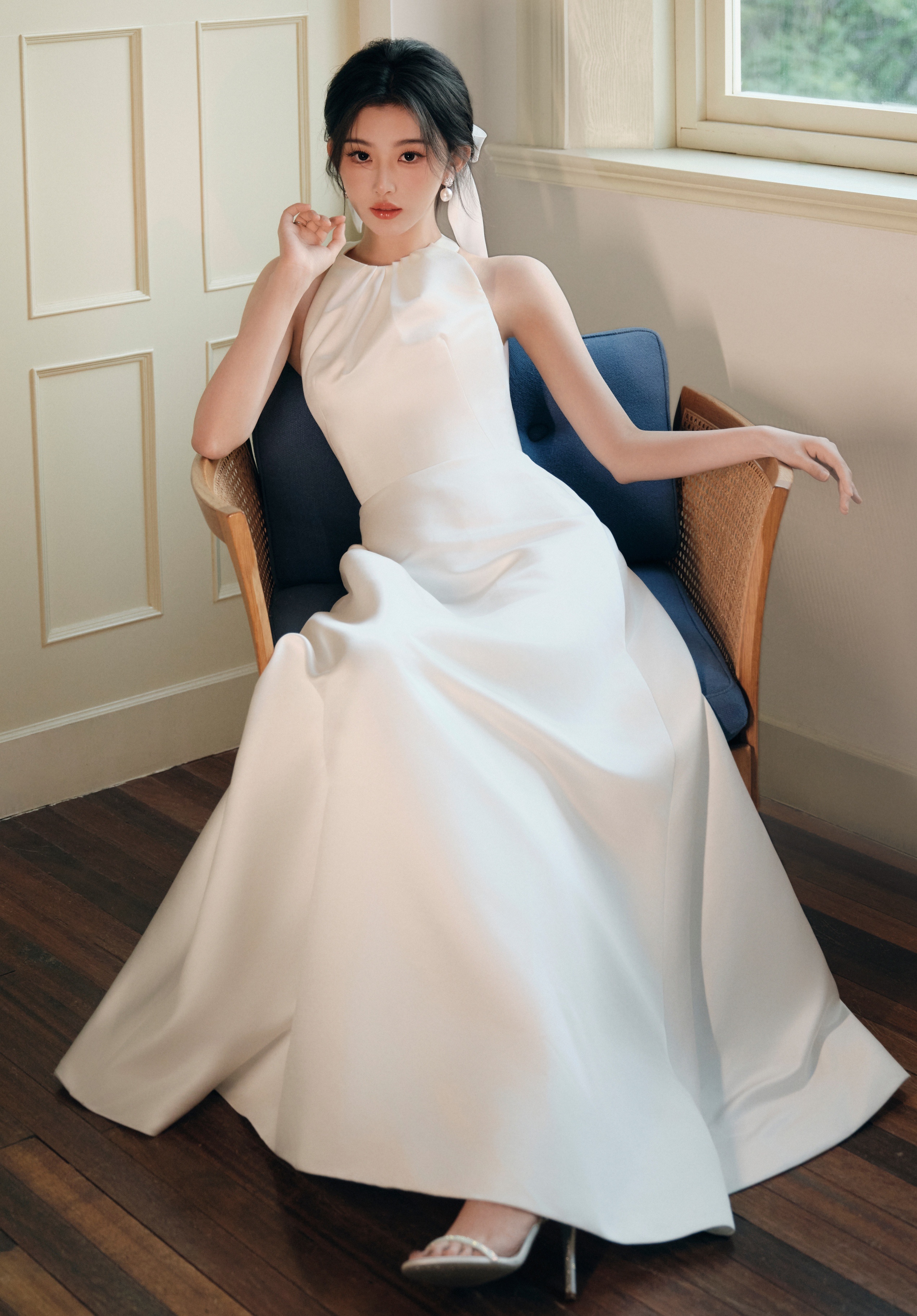孔雪儿云包场逐玉雪儿金色一字带细高跟+白色一字带细高跟