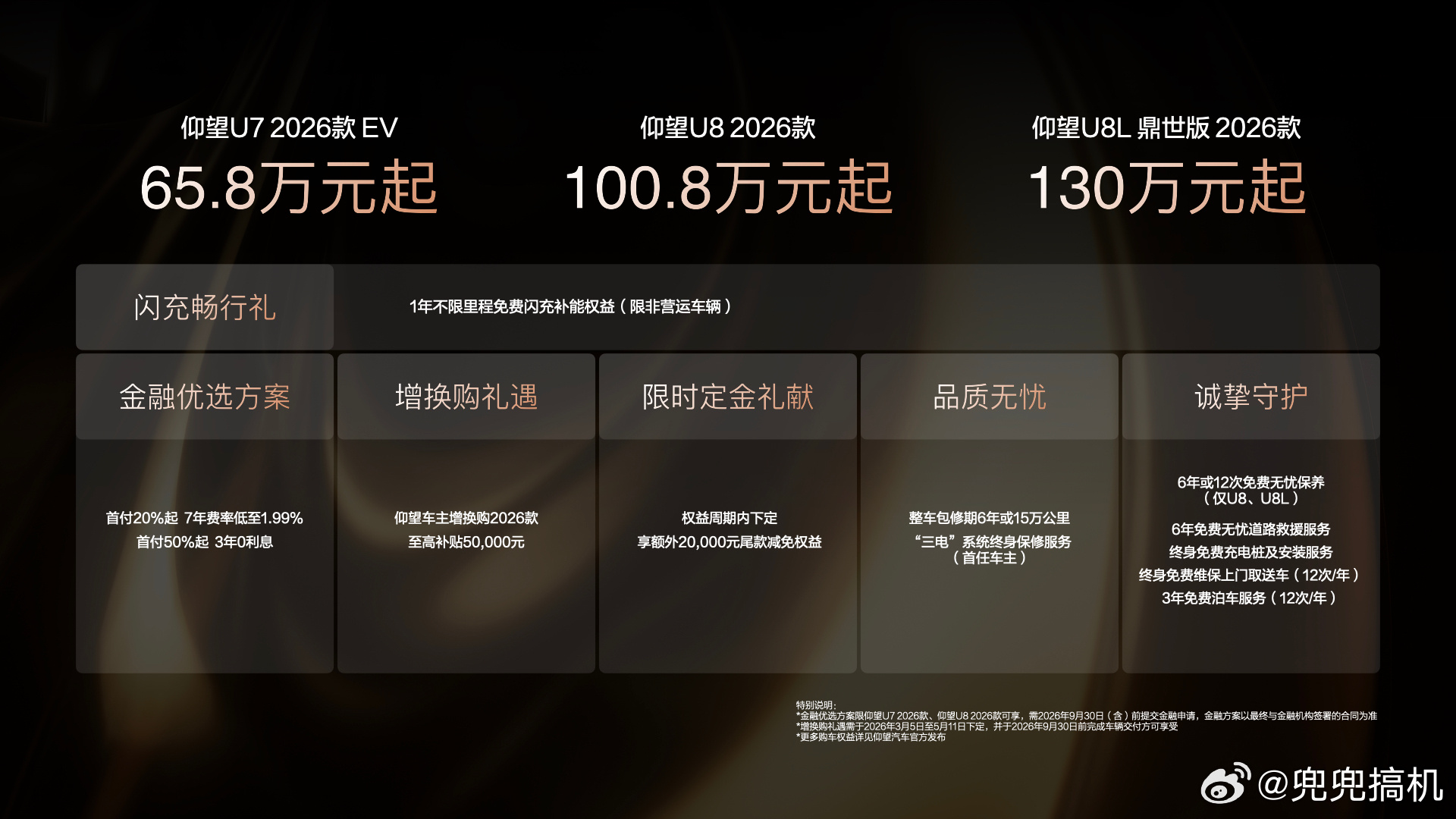 就在昨天比亚迪第二代刀片电池暨闪充技术发布同时,仰望也迎来了2026款旗舰矩阵——U7、U8、U8L鼎世版。