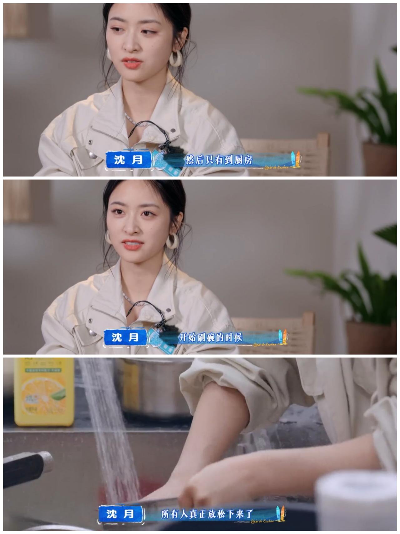 沈月宁愿洗碗, 都不愿意干这件事, 而秦岚 更加胜任。 沈月在三亚录制节目 忙完大部分的内容录制, 她在水龙头下洗碗。 看起来是是一个很辛苦的活。 但是在沈月眼中反而是一种轻松的活, 是一天中难得的幸福时刻。 沈月录制的这个节目 主要是客栈内容。 她强调在吃饭玩游戏时, 还是一种紧张的状态, 只是为了逗客人开心, 只有在洗碗的时候, 她的身心才可以放松下来。 是呀, 与人打交道的时候, 是最累的, 难怪陆虎那么喜欢小动物, 小动物比人更加好相处。 这样看来, 相比跟客人沟通, 沈月更加喜欢洗碗, 与人交际太磨人了。 秦岚似乎更加游刃有余。
