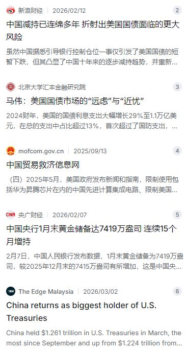 中美若再斗下去,结局就是彻底脱钩! 中国已连续9个月抛售美债,持仓降至2008年来最低。不是为赚利息,而是生死清算:手里握着近39万亿美元的美债,每年利息超万亿,美国只能印钱硬撑;而中国想买的芯片、设备却被禁运,甚至账户可能被冻结——这种“财富”等同废纸。 麻烦看官老爷们右上角点击一下“关注”,既方便您进行讨论和分享,又能给您带来不一样的参与感,感谢您的支持! 中美若再斗下去,结局就是彻底脱钩!这话听着刺耳,但现在发生的这些事儿,让人不得不往这上边想。咱们翻开过去九个月的账本瞅瞅,一条线特别显眼:中国手里攥了十来年的美国国债,正在大批大批地往外撒。到了2026年年初,咱们手里的美债只剩6826亿美元了。这是个啥概念?往回倒十几年,2013年那会儿最高峰可是攥着1.3万亿美元,现在直接削去了一半还多,这规模直接回到了2008年金融危机那阵子。最耐人寻味的是,全世界的外国持有者手里攥的美债总额其实是在创新高的,都奔着9.36万亿美元去了。像日本、英国这些老牌盟友还在那一个劲儿地加仓,唯独咱们,就像看透了牌局的玩家,整整九个月,稳当当地、一步一步地往外撤。 有人就嘀咕了,是不是咱不稀罕那点利息了?说实话,那点账谁都会算,美债利息是不低,但咱们现在压根儿就不是奔着理财去的。这其实是在搞一场事关身家性命的“金融排雷”。你瞅瞅美国现在那本账,联邦政府的欠债已经蹭蹭往39万亿美元的天文数字上蹿了。光是一年下来要付的利息,就得一万多亿美元,这数儿比他们一年的军费还吓人。这么大的窟窿咋填?还不是靠借新债还旧债,靠开动印钞机硬撑。这种信用,说白了就是一张被水泡透了的纸,看着还是张纸,一碰就碎。万一哪天真的爆了雷,或者那边脑子一热把咱们的资产给冻结了,那手里攥着的这东西,跟废纸还有啥区别? 再说一个更憋屈的事儿,你翻翻咱们海关的账本就知道了,2025年这一年,咱们光是买芯片就花了4243亿美元。这玩意儿到现在还是咱们进口花销最大的单一品类。咱们手里攥着大把大把的美元和美债,想买啥?最想要的是高端的光刻机、蚀刻设备,还有那些被卡脖子的AI芯片。可人家呢?给咱们的是一张越拉越长的“实体清单”,啥都不让卖。这就搞出一个特别荒诞的局面:你手里捏着人家打的“欠条”,可到了人家店里,你想买的正经东西,人家全贴上“禁售”标签了,一件都不卖给你。那这张欠条除了当个“人质”攥在人家手里,还有啥用?既然这东西换不来咱们国家发展急需的技术和安全,那还趴在人家的账本上吃那点利息干啥?早撒手早踏实。 所以你就看明白了,咱们现在不光是往外撒美债,另一只手也没闲着。到2026年2月底,中国人民银行的黄金储备已经悄悄增持到了2330吨。这已经是连续好多年、不带喘气地往家里搬黄金了。这哪是简单的换个理财篮子?这是在给国家财富筑一道自己的安全墙。黄金这玩意儿实在,攥自己手心里,谁也抢不走,谁也赖不掉。不像存在人家那儿的数字,哪天人家不高兴,一个法案过来就能给你清零。这种实打实的家底,才是关键时刻能拿出来顶事儿的底气。 说到底,这不是咱们想闹到这一步,这是活生生被逼出来的路。美国那边一边在贸易上加着关税,一边拉着日本、荷兰这些国家搞技术封锁,一边还想着让产业链搬出中国。他们把美债这张牌,硬生生从“全球资产的压舱石”,变成了压在咱们头上的一副“金融枷锁”。既然枷锁都套脖子上了,咱能不想法子挣脱吗?当咱们自己的芯片厂一条条建起来,良率一点点啃下来,对美债这种“断舍离”只会走得更彻底、更决绝。 这场博弈要是真的一路走到黑,结局恐怕就是中美彻底脱钩。美国可能觉得自己只是少了个债主,但实际上,它丢掉的是这个星球上最稳当的供应链和一个最讲信用的合作伙伴。而对咱们来说,失去的不过是一个不断透支信用的霸道邻居,和一份随时可能变成废纸的所谓“资产”。这笔账划不划得来,咱们心里有杆秤,时间会是最好的证明。