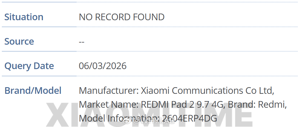 REDMI Pad 2 9.7 通过 GSMA 认证,9.7 英寸屏幕,还是定位入门级千元平板,生产力别指望有多强,不过拿来当学习平板还是可以的,3 月或 4 月左右发布。