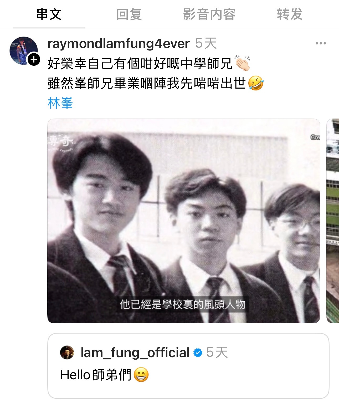 网民分享林峯中学时的照片