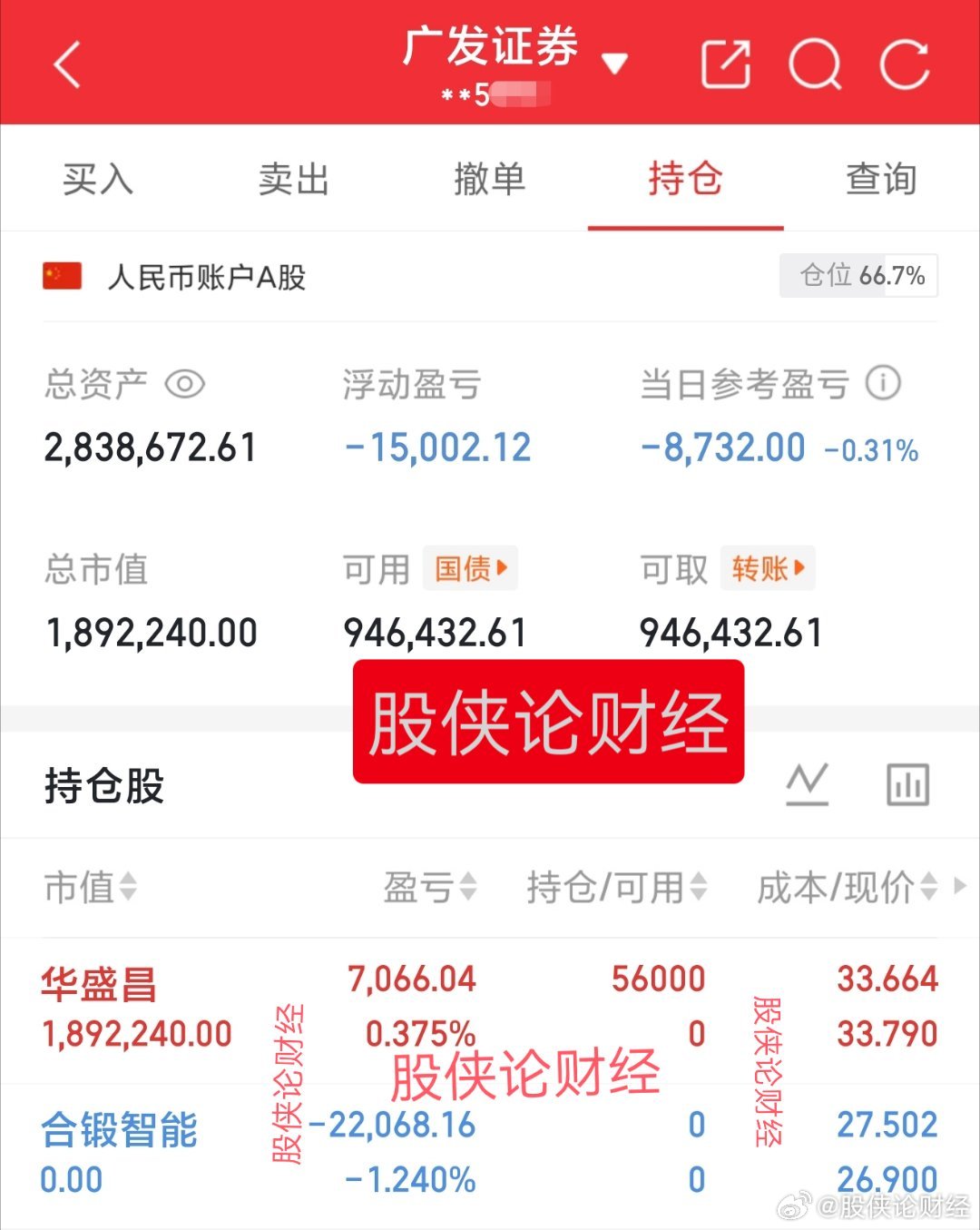 目前资金:2838672.61元