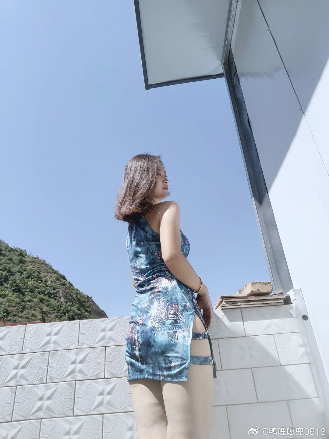 写真 理发店老板娘一身黑色吊带连衣裙真好看