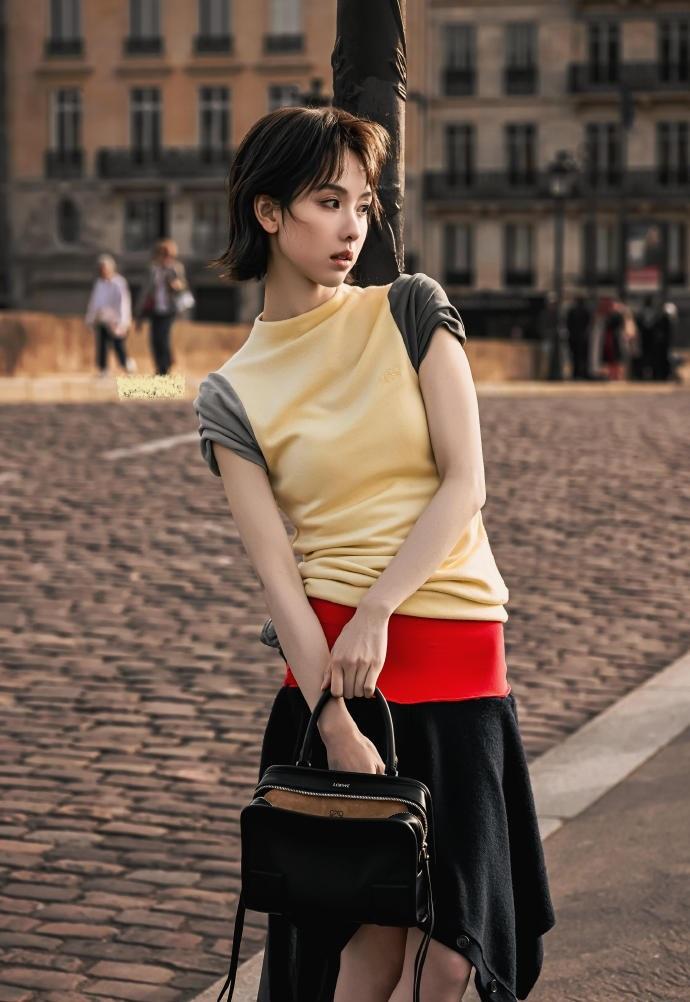 最近陈都灵在巴黎街头拍摄了一组美照,她看起来非常的漂亮,也特别的显年轻。 陈都灵这次搭配的很有层次感,看起来像个清新的美少女。 陈都灵上身穿拼色风格的T恤,下身搭配拼色裙,尽显时尚风情。 她搭配的这身衣服很贴身,能够让她秀出了纤细的腰部线条,还展现出了完美的身材曲线,凸显出了优雅之美。 陈都灵留着清新的短发,还画着精致的妆容,手上拎着黑色的包包,确实是太迷人了,看上去也很有魅力,不得不说她这回搭配的很出彩。