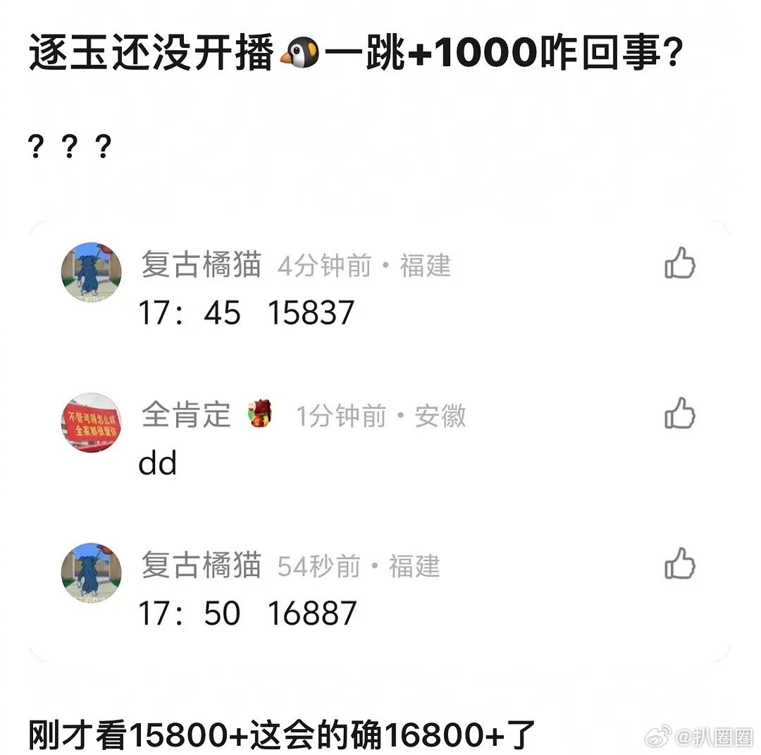 有网友问逐玉还没开播热度就+1000了,咋回事~