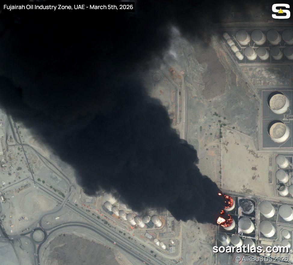 刚出炉的卫星画面太震撼—— 富查伊拉石油设施浓烟滚滚,储油罐直接被烧穿, 这不是意外,是中东冲突烧到了全球能源大动脉。 多方信源已经实锤: 伊朗无人机发动袭击,阿联酋防空拦截成功, 但残骸坠落引发大火,关键油区一度停摆。 背后逻辑一句话戳穿: 美以先动手 → 伊朗对等报复 → 海湾国家遭殃 → 全球油价狂飙。 别觉得这事离你很远: 油价一涨,运费涨、物价涨、出行成本涨, 全世界都在为中东冲突买单。 海湾不太平,能源不安稳。 这一次,谁都别想置身事外