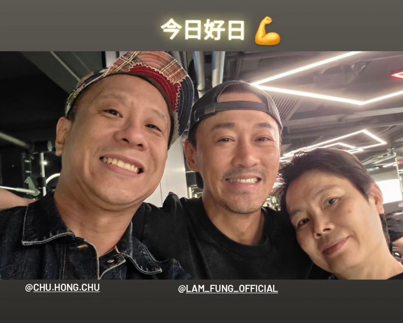 健身教练晒与林峯、张文杰、朱栢康合照