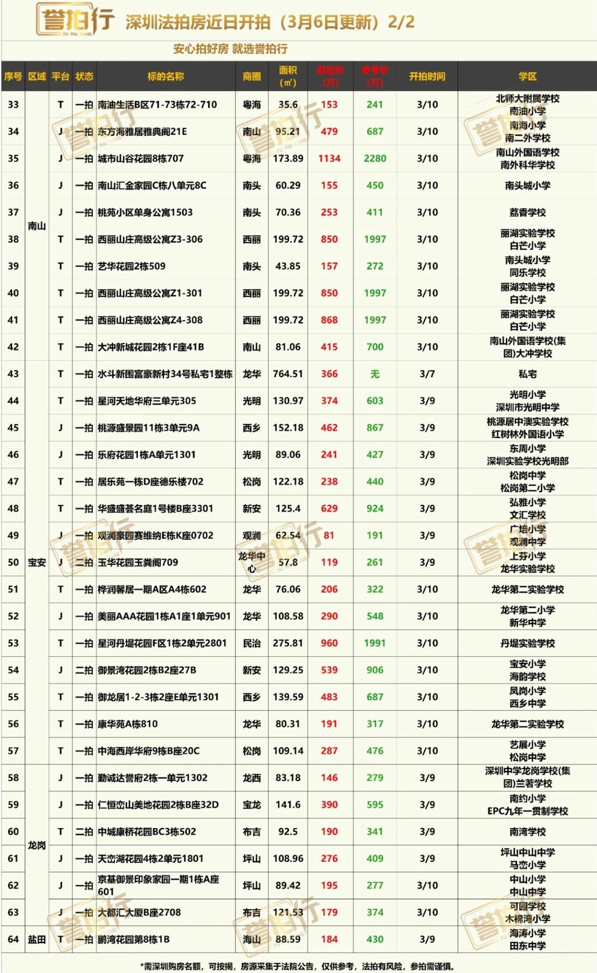深圳法拍房:近期开拍,龙华豪宅4折拍卖,香蜜湖豪宅5折拍卖~ 1、金碧苑别墅,高赠送,单价只要3.3万 2、香蜜湖·水榭花都,单价9.2万,5折拍卖,很不错 3、海王大厦,楼下两条地铁,单价只要2.5万,7折拍卖 4、城市山谷,位置好,单价只要6.5万,7折拍卖,很不错 5、龙华豪宅·星河丹堤3.5万拍卖,高层视野很好/看银湖山/高赠送/地铁口,4折起~