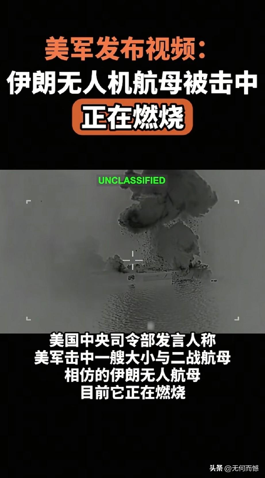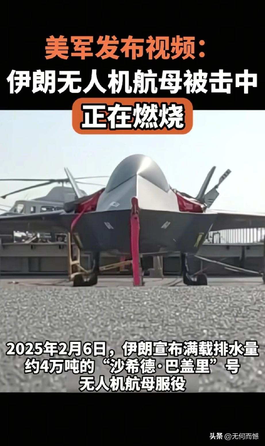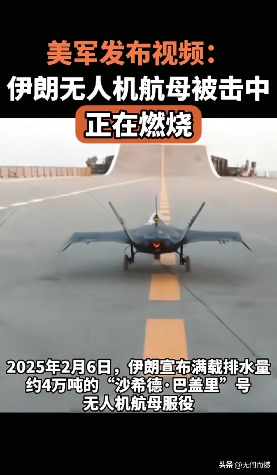 伊朗无人机航母被击中的画面,3月6日已经被美军公布了,这艘无人机航母的排水量是4万吨,2025年2月6日服役,无人机航母的甲板被击中,燃起了熊熊大火,据说美军在袭击这艘无人机航母时,上面的人员都已经撤离,并没有造成人员伤亡!