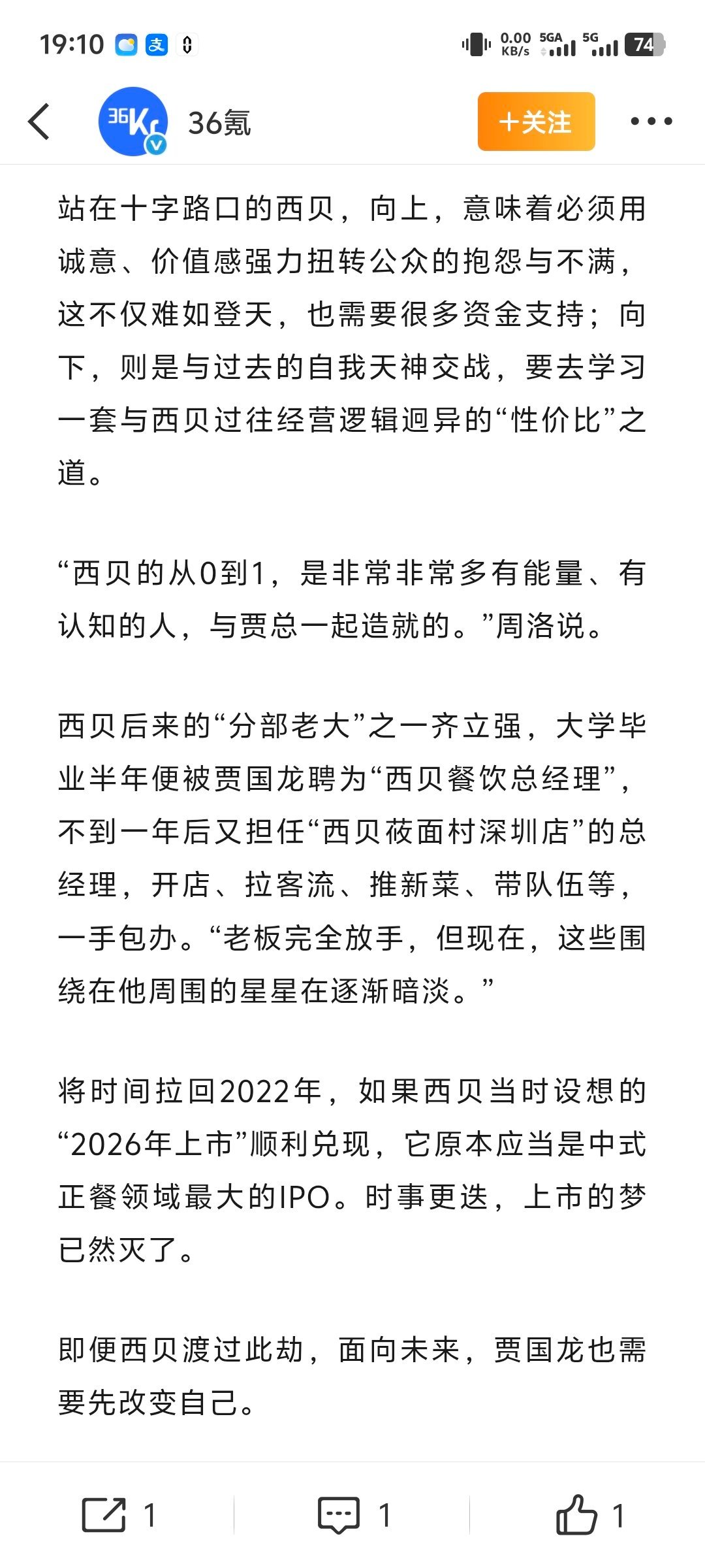 贾国龙卸任西贝CEO 上市无望,西贝龙哥卸任了!我是就吃过一次西贝,单纯觉得不好吃还贵,所以再也没去过了