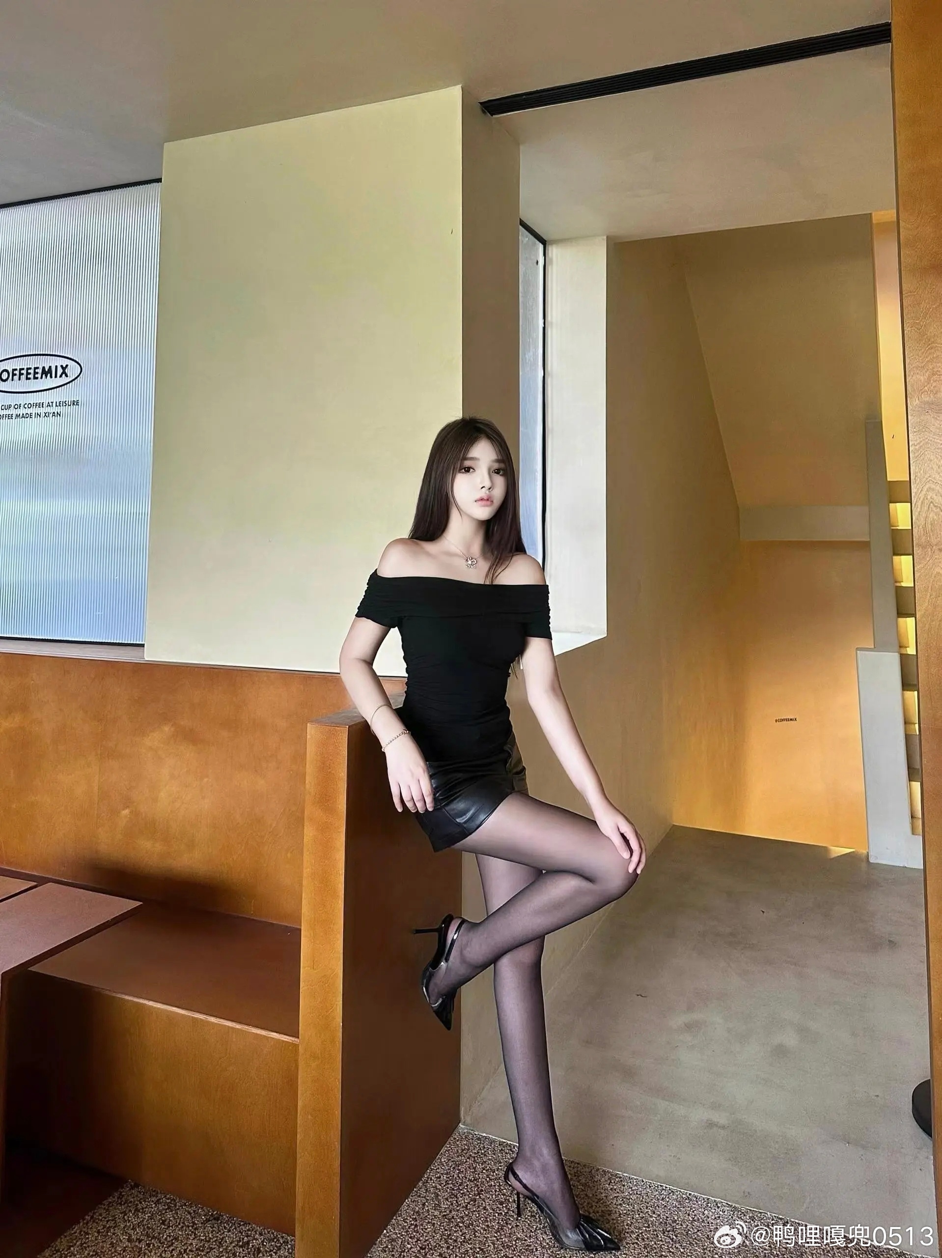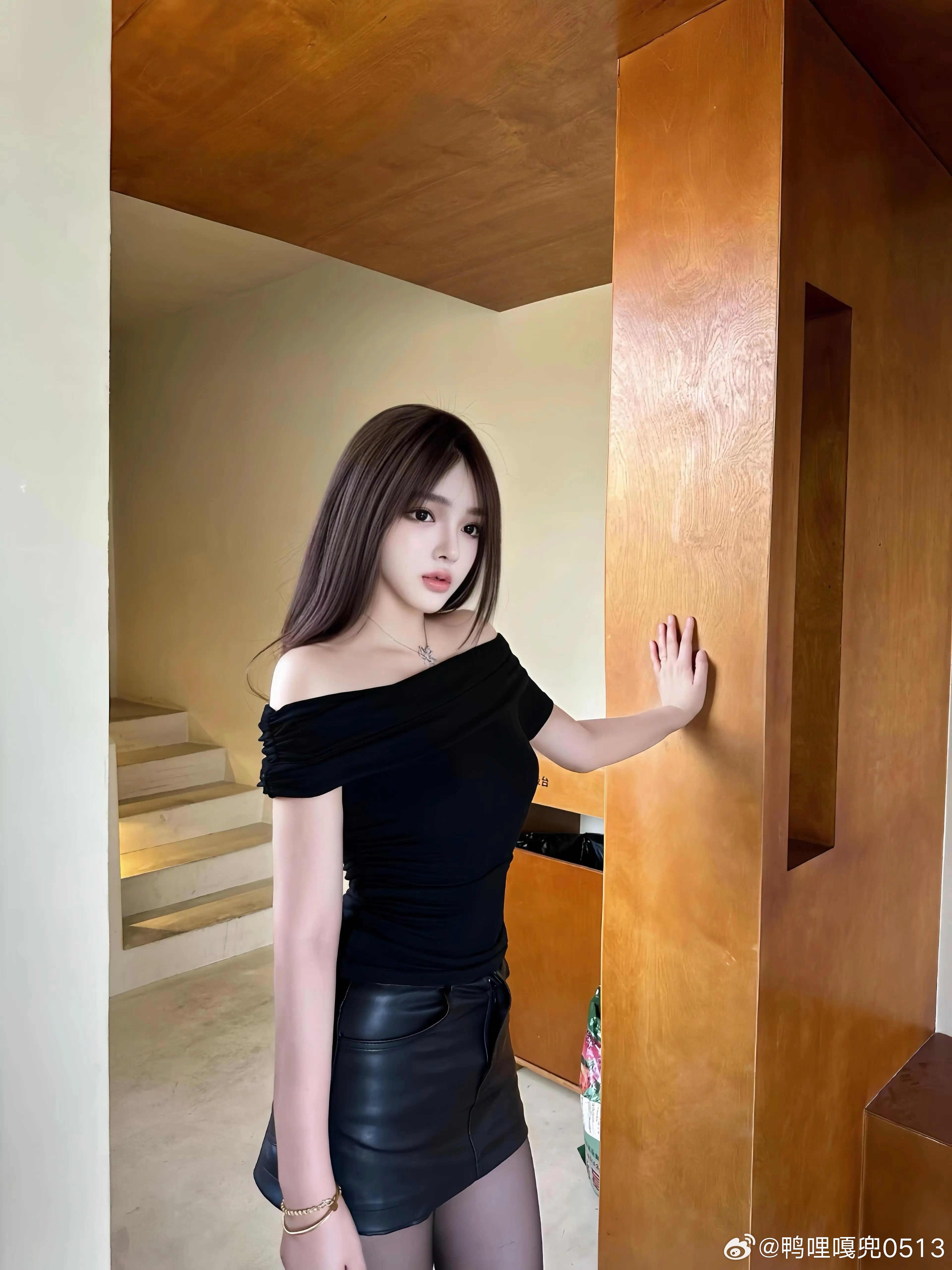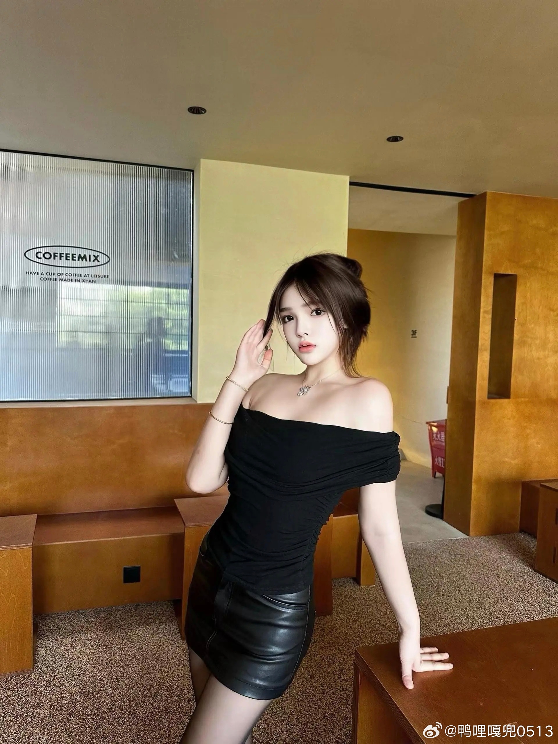 写真 皮裙搭配露肩抹胸体恤高级感拉满