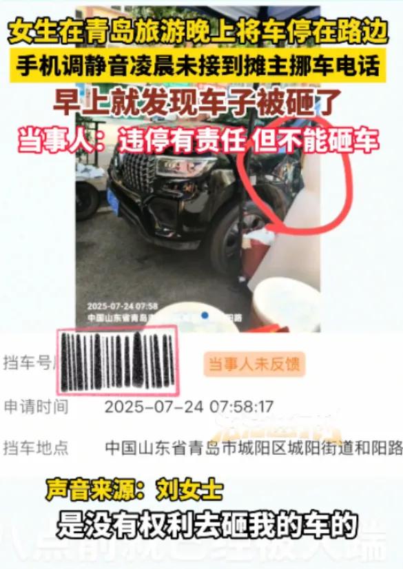 女子自驾来青岛旅游,路边有停车位,她就开了进去。她不知道,这里是早市经营点。凌晨四点,摊主给女子打去电话,因手机静音,整整两个小时没人接听。一男子砸了车。因为是监控盲区,查不出谁砸的车。女子只能自行修车。 外地游客来旅游,就应该提前问问民宿老板,在哪里可以停车。那是别人家,停错了,对谁都不好。 人家早市的摊位是花了钱的,是有租金的,你违规乱停车影响人家做生意,人家能不砸你的车? 不要觉得自己冤枉。既然留了电话,一定保持畅通,为啥要静音?打电话不接比不留挪车电话更卑鄙。