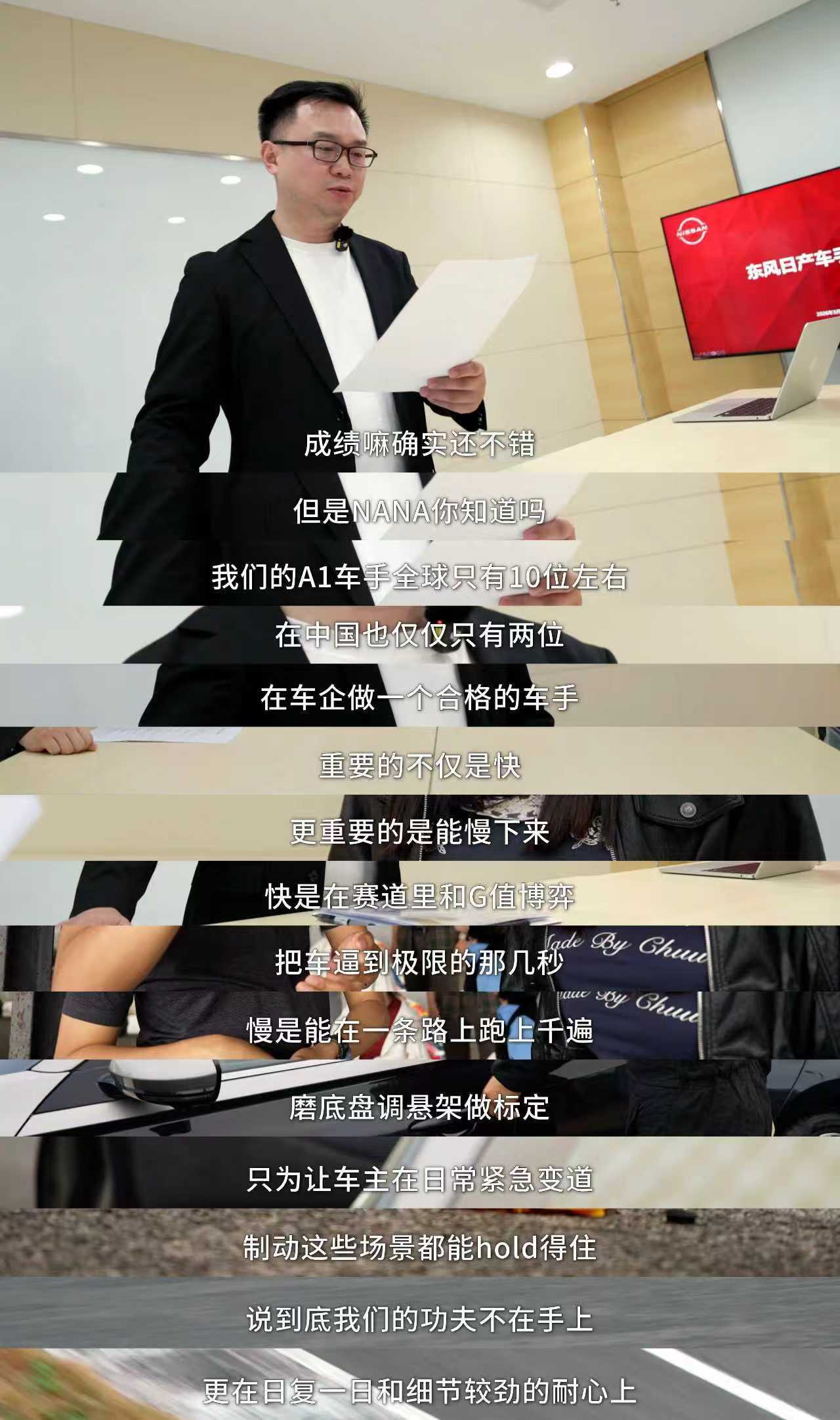 天籁鸿蒙380地表最强鸿蒙燃油车刚刷完这一期极速拍档,NANA居然跑去应聘东风日产车手,本来以为就是个节目效果,结果一上赛道直接来真的。胡敬豪1:09.58,NANA1:09.59,就差0.01秒,这就是传说中的控分大佬?