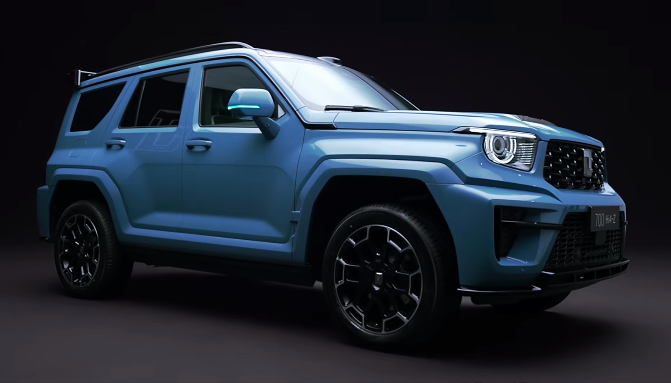 坦克700这个青色很帅啊!加上了小蓝灯,加上了激光雷达,中网,车头也有些调整。不