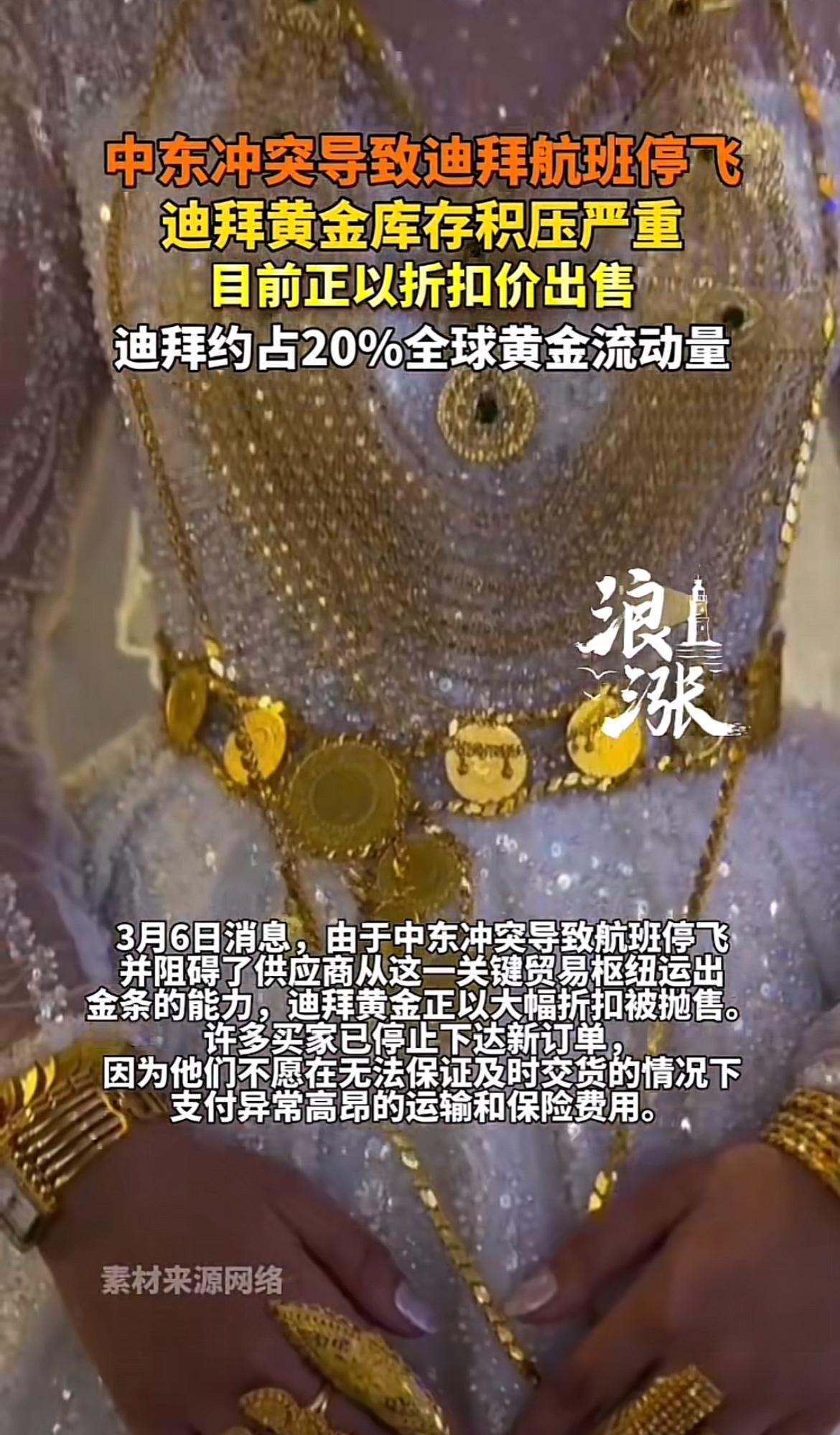 中东冲突这事儿可太闹心了,迪拜航班都停飞了,黄金库存积压得那叫一个严重。本来迪拜那可是黄金交易的热门地,好多人都冲着黄金去的。现在航班一停,黄金运不出去,商家们可愁坏了。 为了赶紧把库存清出去,迪拜的黄金开始以折扣价出售。这对想买黄金的人来说,可算是个好机会。说不定能花比平时少的钱,买到心仪的黄金饰品或者金条。不过呢,这冲突啥时候能结束也不好说,要是一直这样,黄金市场估计还得动荡一阵子。