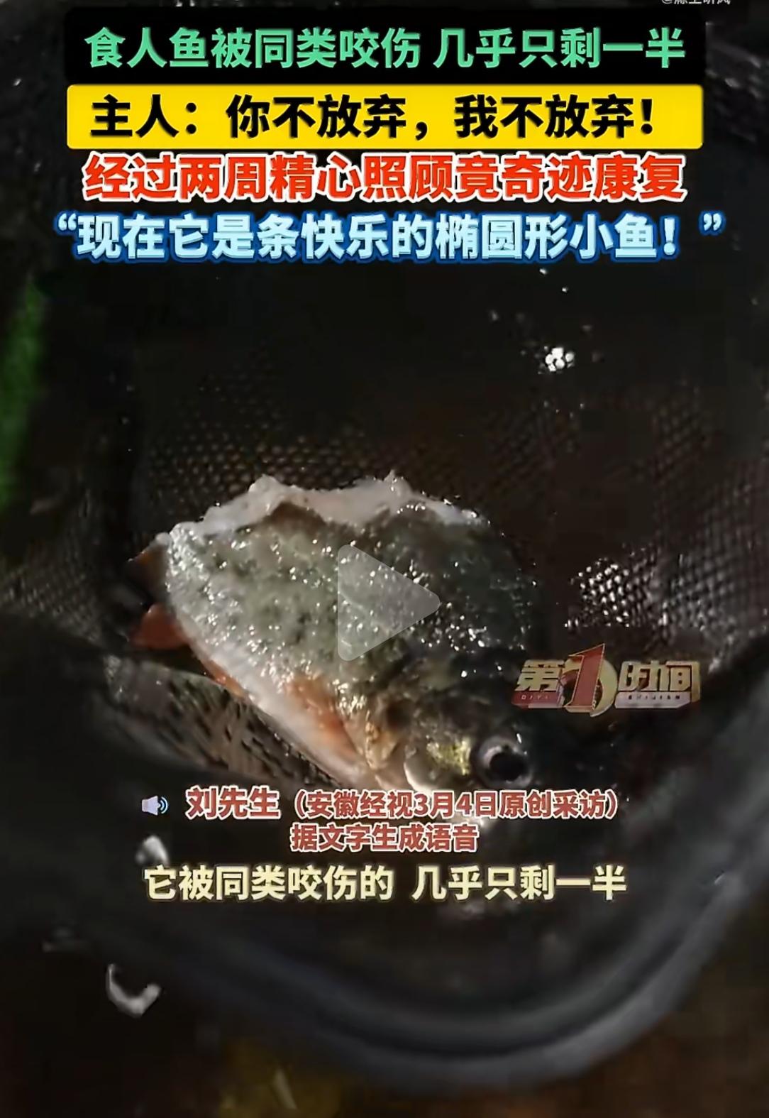 鱼坚强!这条红腹食人鱼,用半截身体游出了生命的奇迹。 事情是这样的:一条红腹食人鱼被同类咬伤,伤得有多重?几乎只剩半截身体。主人看到时都懵了,以为它撑不过当晚。可那条小鱼还在游,还在努力活着。 主人说了一句话:“你不放弃,我不放弃。”然后开始了长达两周的精心照顾——换水、下药、单独喂养,一点一点看着它挺过来。 两周后,奇迹真的发生了。那条只剩半截的鱼,不仅活了下来,还活得好好的。主人笑称:“现在它是条快乐的椭圆形小鱼!” 网友看完又哭又笑:“椭圆形小鱼,这形容太可爱了!”“鱼生都只剩一半了,还在努力活着,我有什么理由躺平?”“建议给这条鱼颁个‘年度生命顽强奖’。” 有人科普:食人鱼咬合力强,同类相残也常见。但能扛过这么重的伤,靠的不只是生命力,还有主人的不放弃。 一条鱼,用半截身体游出了完整的生命。主人说它“顽强”,可更多人看到的是那份“你不放弃,我就不放弃”的陪伴。