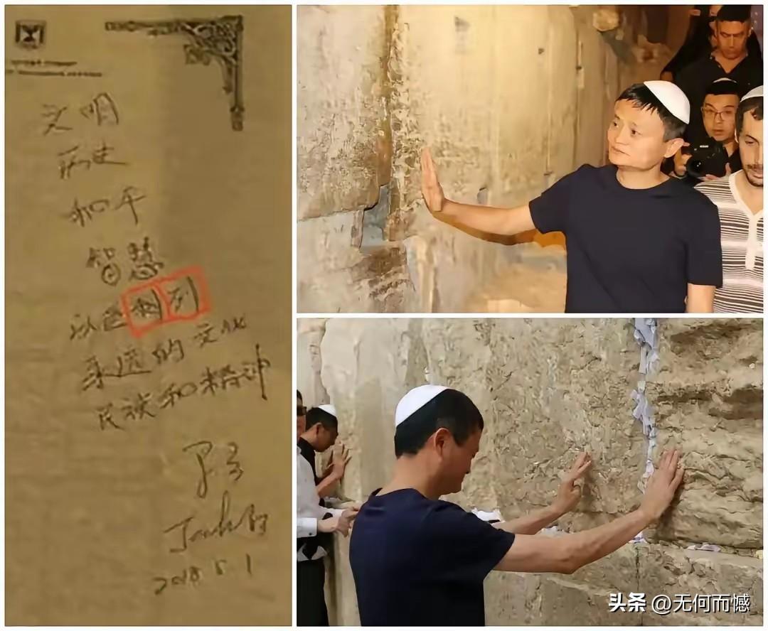 马云在2018年5月1日的时候,曾经来到过以色列,他去的这个地方应该是耶路撒冷的哭墙,他用双手摸着哭墙,好像在思考着什么!在一张纸上,写下了一些文字,虽然落款写着马云,好像还有另外一个人名字,是不是马云写的,就不得而知了!大致内容是:文明,历史,和平,智慧,以色列永远的文化、民族和精神!