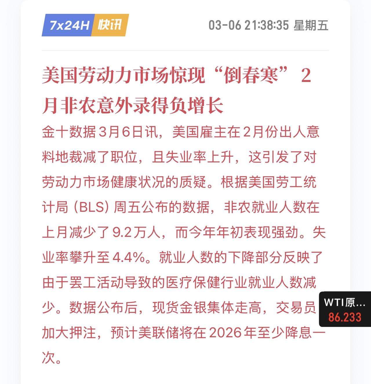非农数据爆冷门,意外负值!美国非农数据意外爆冷,新增就业负值;美联储6月降息概率大增!给市场留点幻想,这样更好出货!