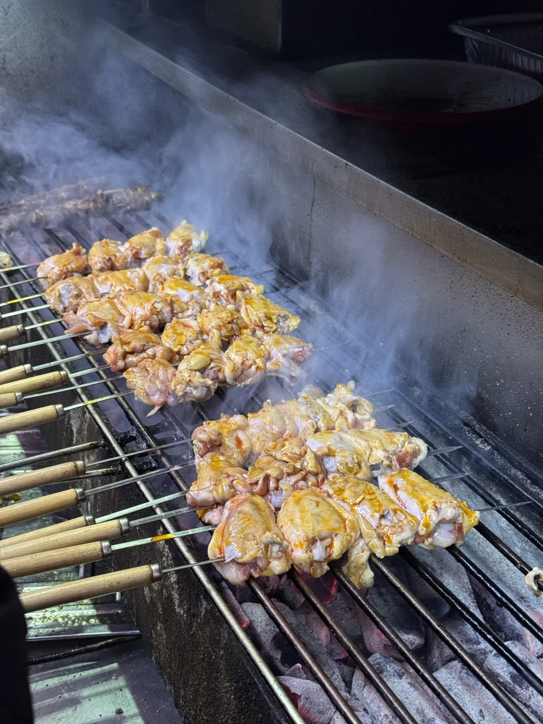 他们家签子都是当天现穿,架上看着就新鲜,炭火一落,香味扑面而来。