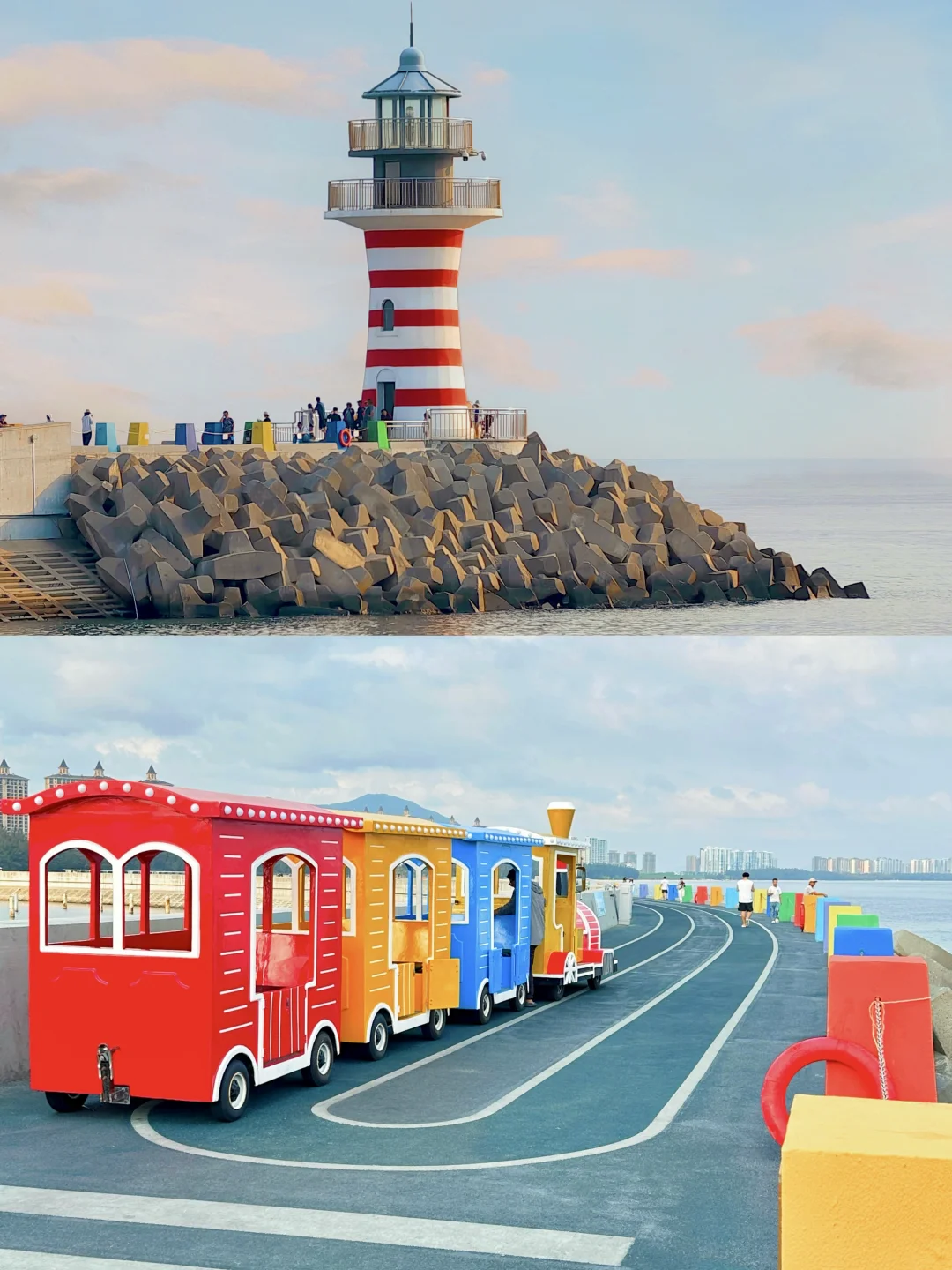 导航🧭【渐见咖啡馆】,彩虹海边栈道拍照出片,坐小火车直达可灯塔!再去🧭瀚海银滩,椰林白沙滩,很火的歪脖子树也在这