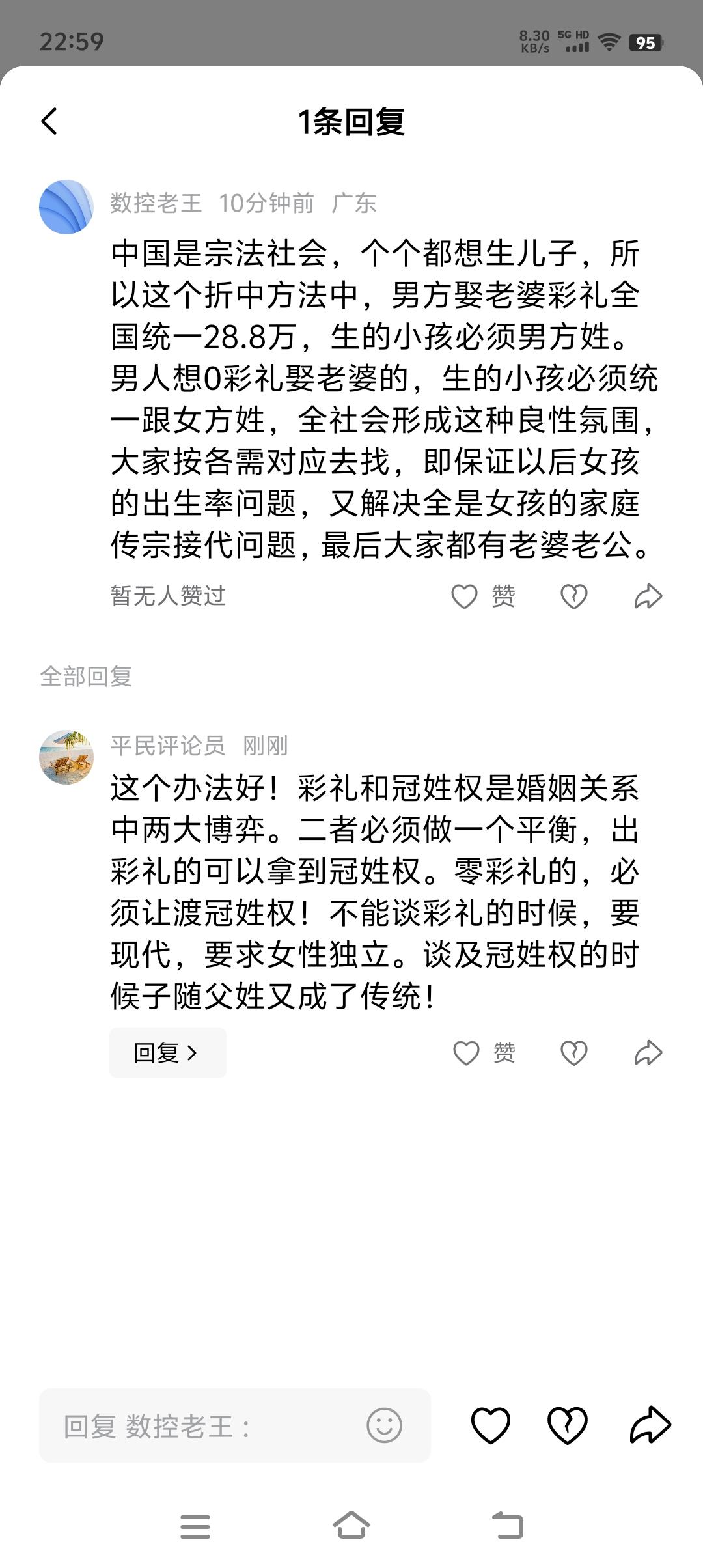 针对彩礼和冠姓权的争议,有网友提出了一个相当不错的办法。男方娶亲统一支付二十八万八的彩礼,所生小孩随父姓;若零彩礼,孩子则必须随母姓。 彩礼和冠姓权是婚姻关系里的两大博弈点,二者需达成平衡。支付彩礼的一方可获得冠姓权,零彩礼的一方则需让渡冠姓权。不能在谈彩礼时追求现代观念,要求女性独立;谈及冠姓权时,又搬出“子随父姓”的传统。 究竟是传统还是现代,取决于按传统还是按现代,自己能够利益最大化。说白了,就是一种自私。传统有利的时候,一定按照传统办。现代有利的时候,就一定按照现代办。最看不起这种人。