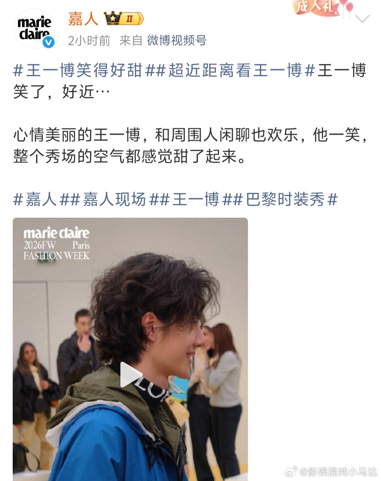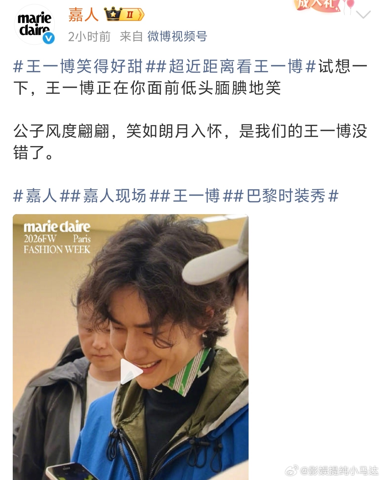 外国摄影师喊王一博喊破音了怎么感觉嘉人今天非常的站姐啊哈哈哈哈~这是爱王一博爱到骨子里了吧,直接属于冲浪一线了这是超近距离看王一博王一博罗意威大秀内场状态