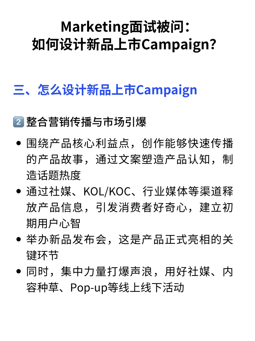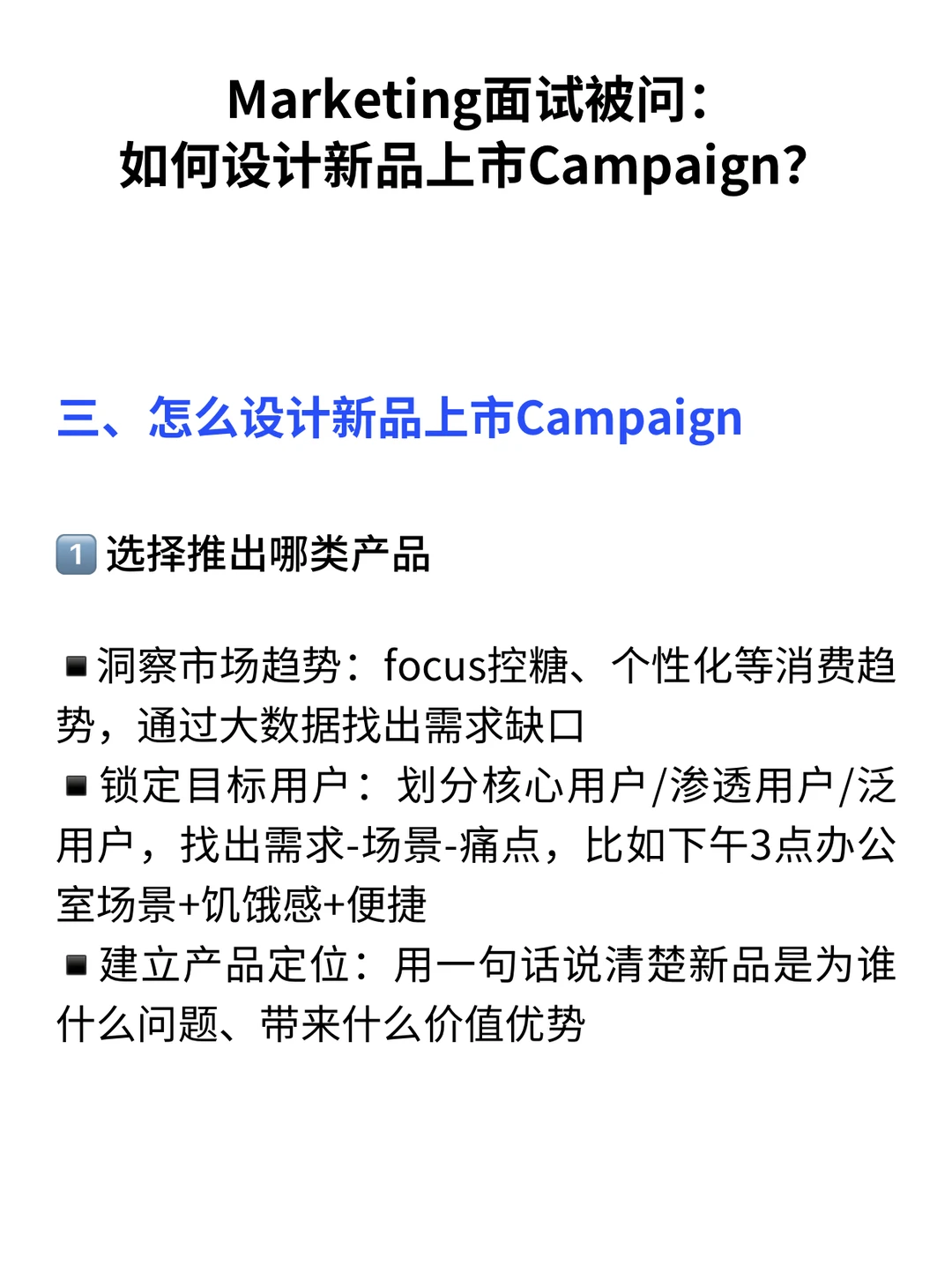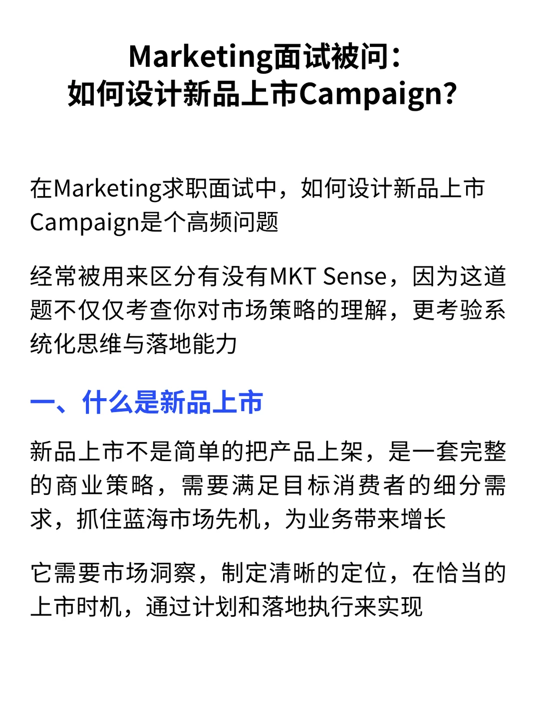 在Marketing岗位面试的时候,设计新品上市方案是一个经常出现的题目